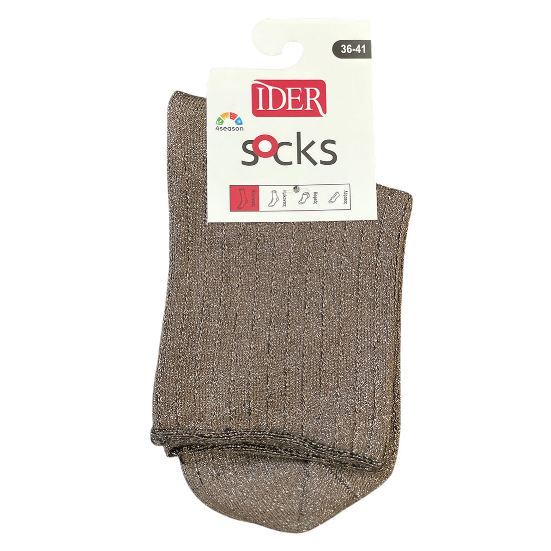 Women''s socks by Ider. Women''s Ider socks with a subtle glitter effect and elastic fit. Available in black, brown, and burgundy colors. Elegant and comfortable, perfect for any season and look.