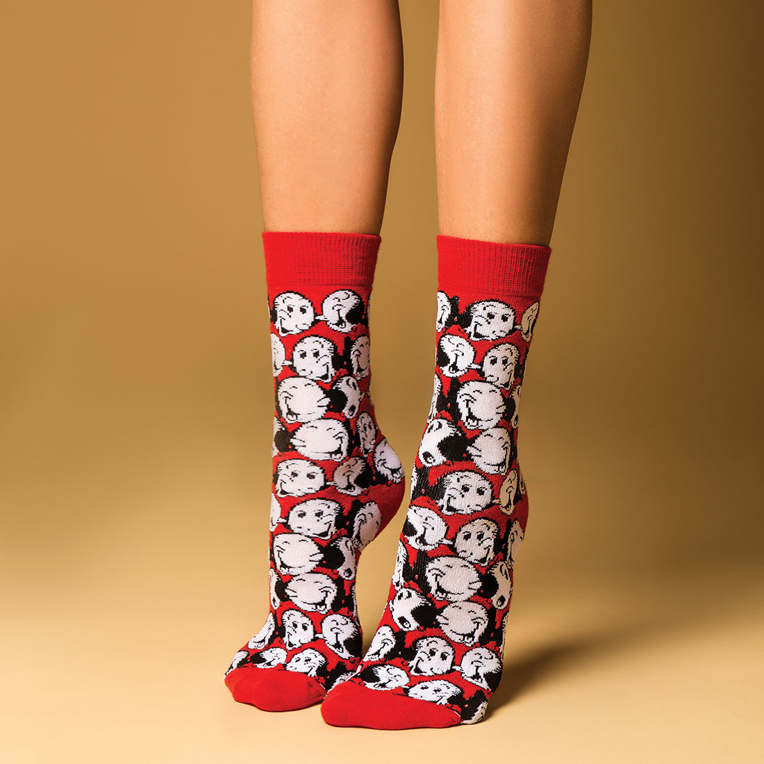 Women''s socks by Popeye. Red socks with Olive Oyl faces in various expressions. Cute and playful for all ages.