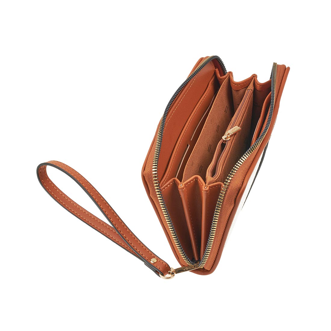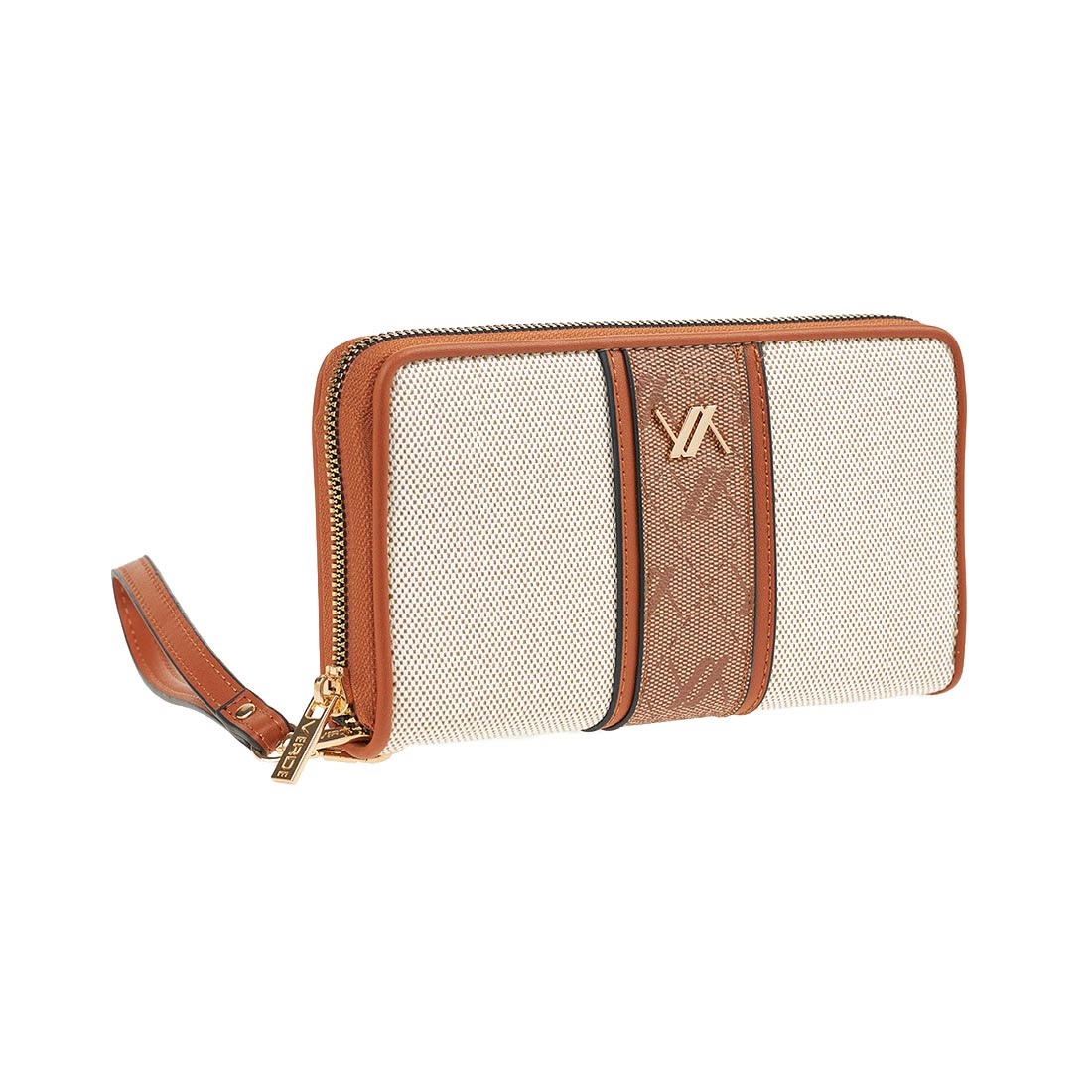 Women''s wallet by Verde in off-white and kamel colour. Ideal choice for all hours of the day, offers comfort and matches every style. Dimensions: 19,5x2x10,5 cm.