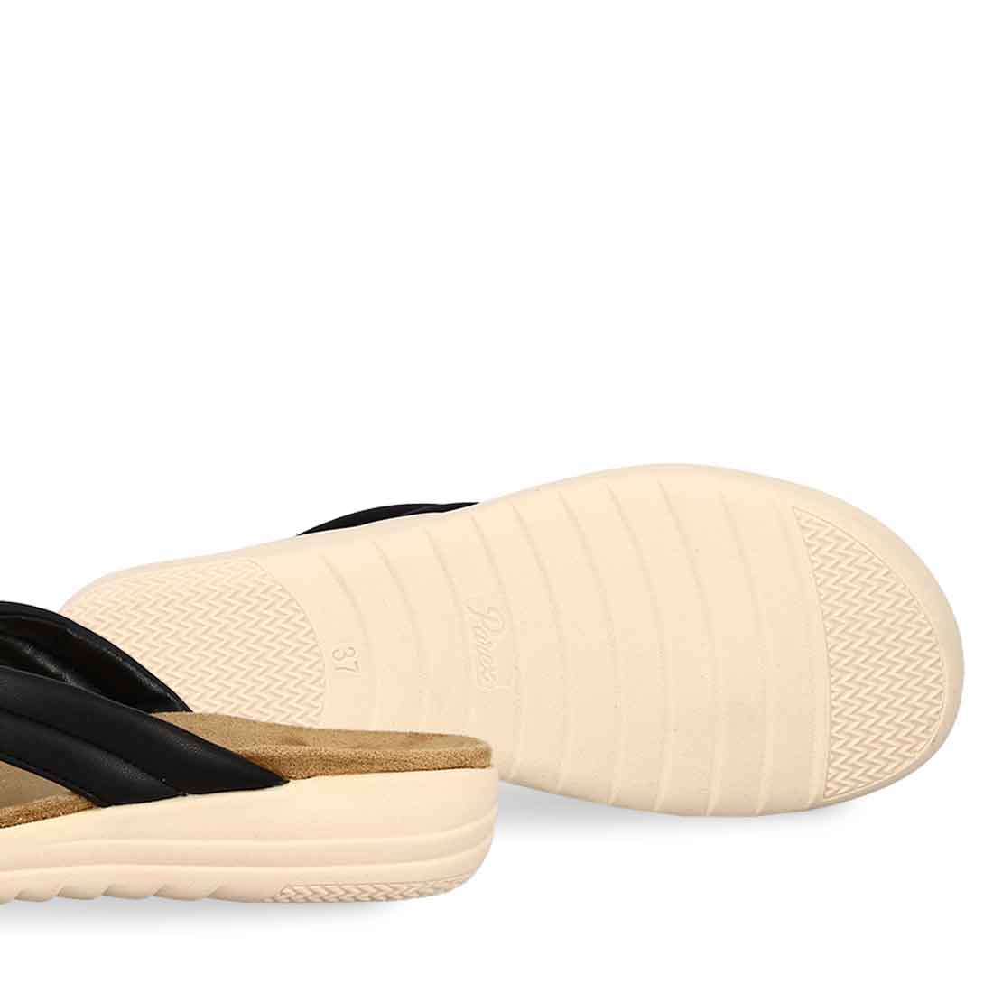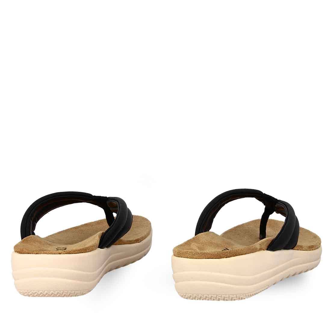 Slides with comfortable sole and V-shaped strap. Non slip sole. Relaxed fit.