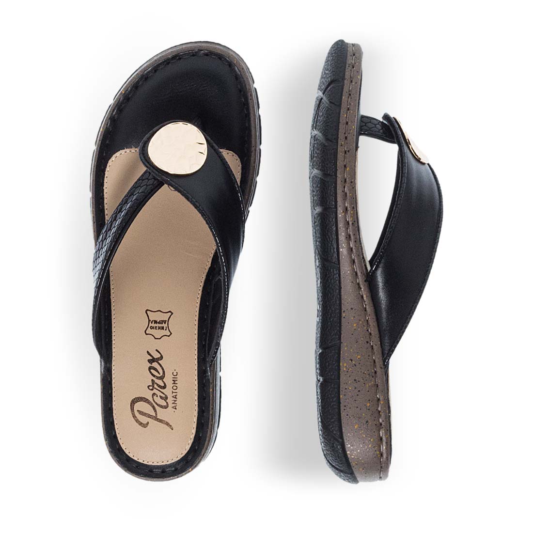 Timeless and comfortable comfort sandals by Parex. They are made of high quality eco leather. V-straps with decorative button. These sandals will give you steady steps and protect your feet in every move. Very soft footbed and stable non-slip sole. Enjoy comfort and style with these wonderful comfort sandals.