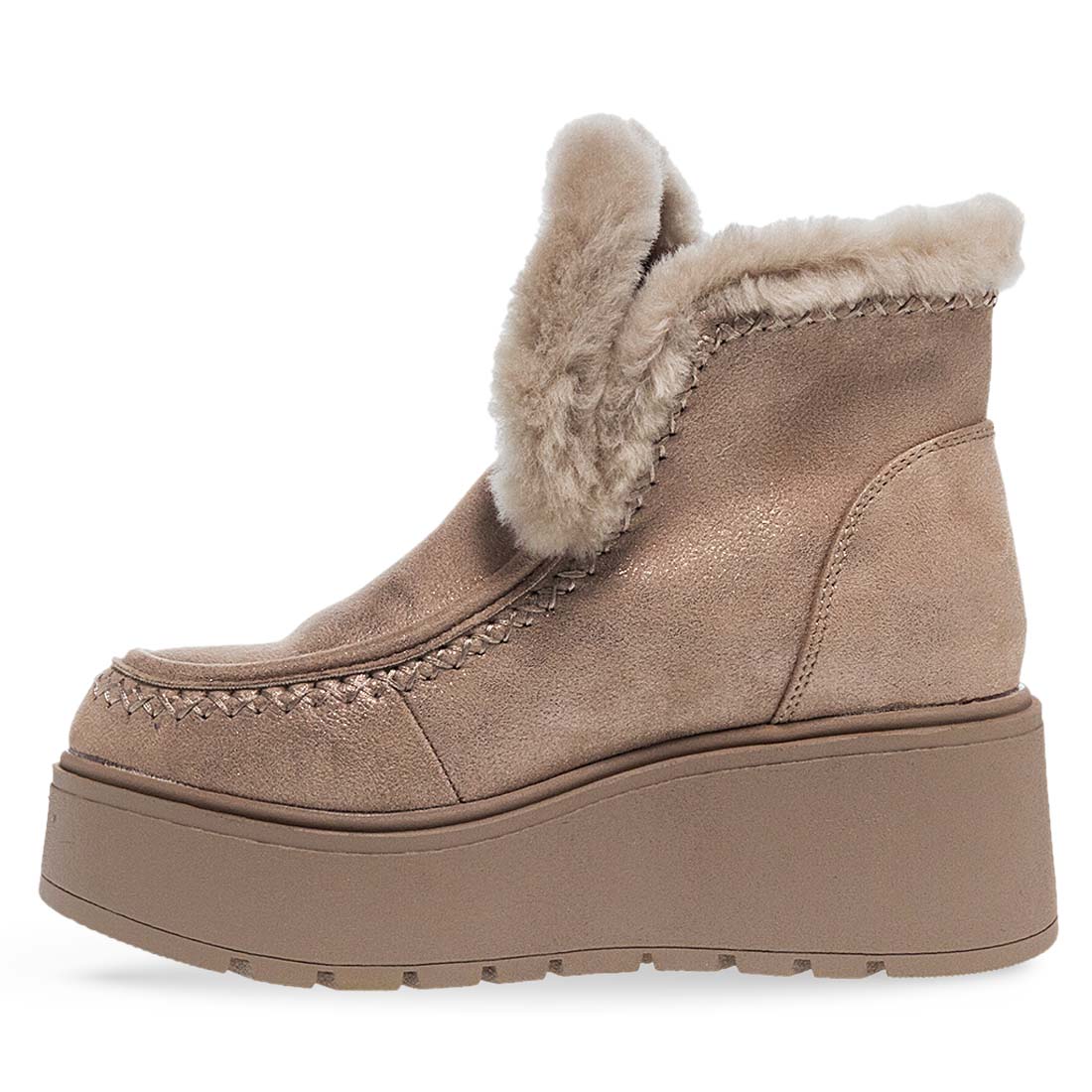 These apres ski for women by Exe will keep your feet warm. Eco fur lining and non-slip stable sole. Warm and comfortable model. Stable, plarftom sole. Suede texture.