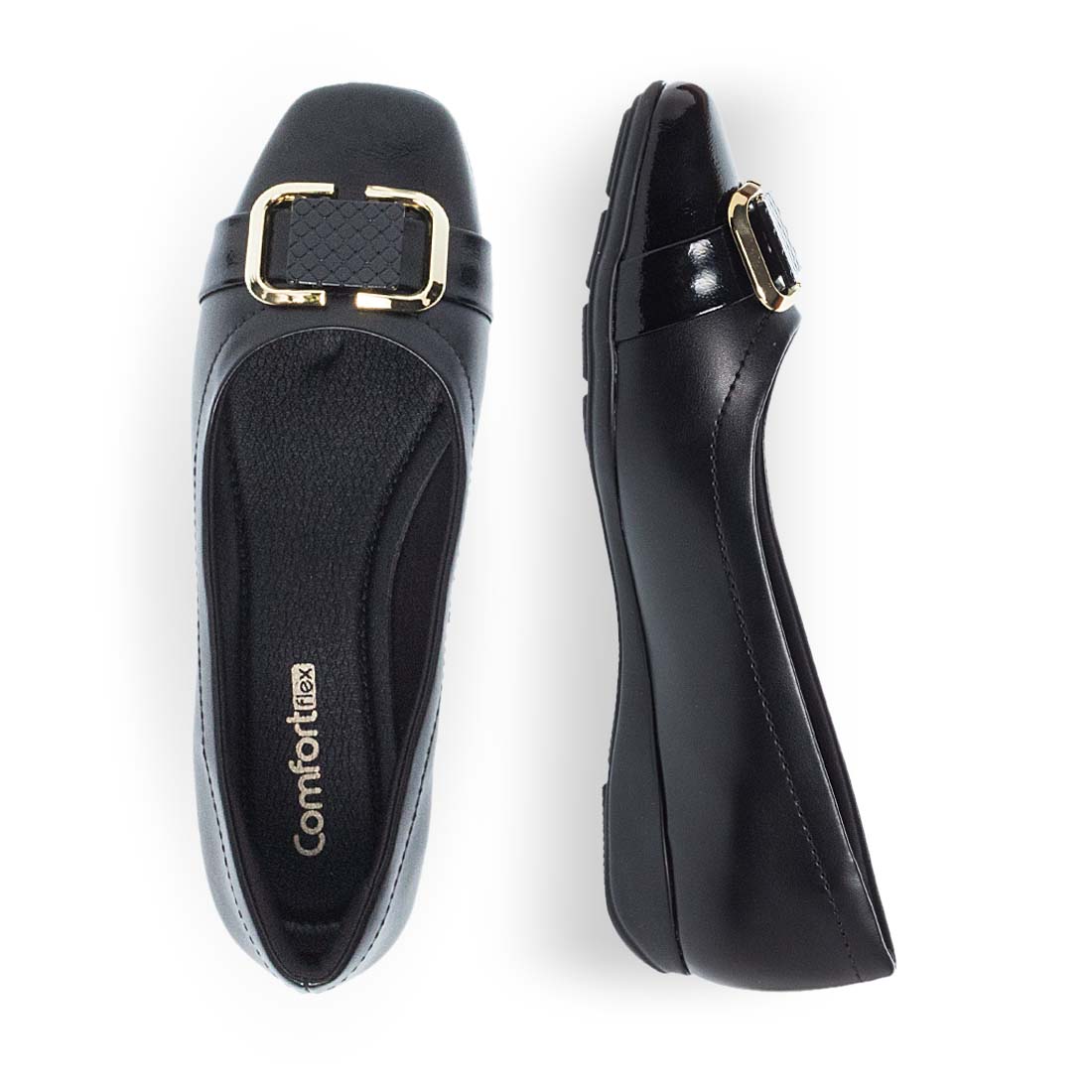 Rounded ballerinas for women by Comfort flex with metal detail on the front. Comfortale footbed with flexible non-slip sole. Super soft insole. Low heel.