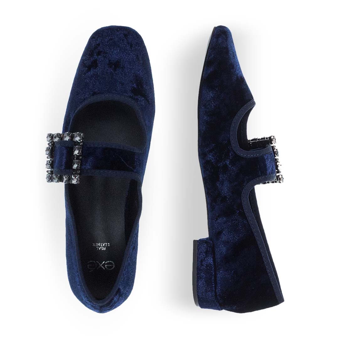 Modern velvet ballerinas by Exe. With wide strap on the upper. Rhinestone detail. Comfortable insole. This design will upgrade your look. Available in 2 colors.