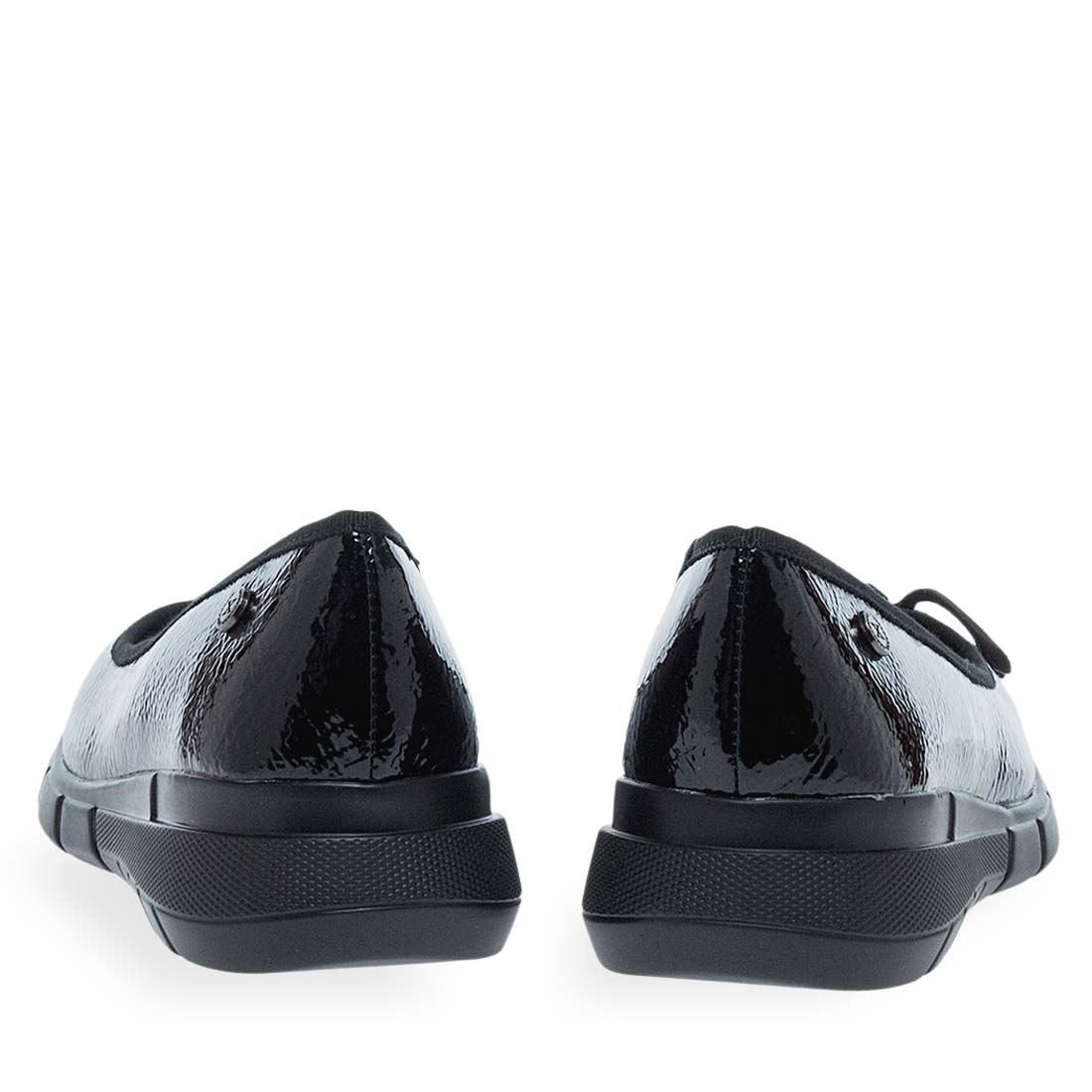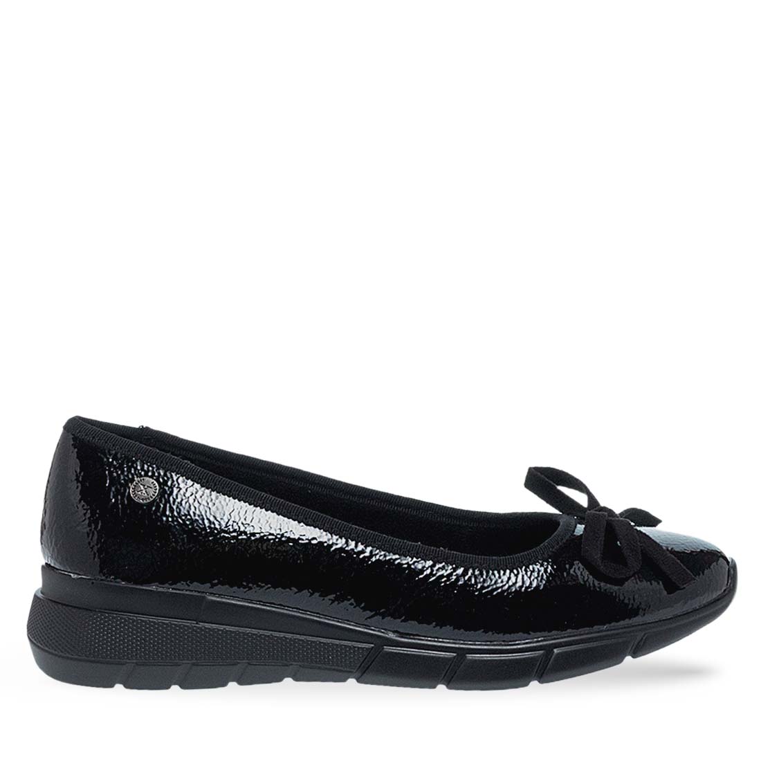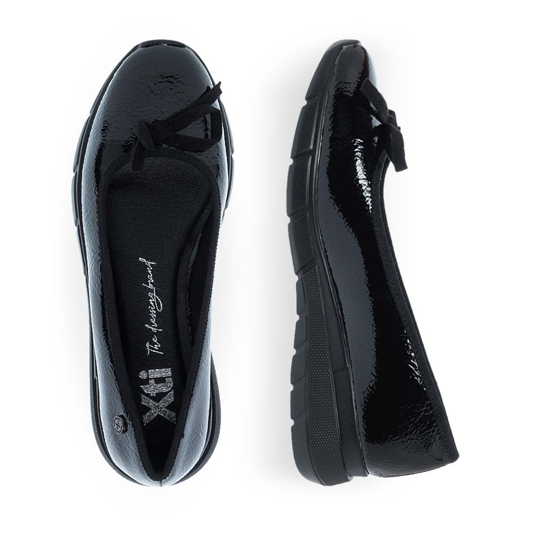 Women''s ballerinas by Xti. Women’s black patent ballerina flats with bow detail, cushioned sole, and modern design.
