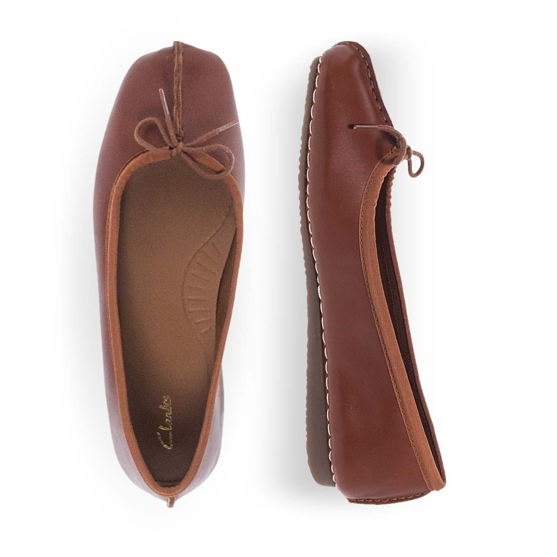 Leather ballerinas Clarks for women. Comfortable, breathable and flexible ballet flats. Black design. Soft insole. Bow detail. Easy to fit