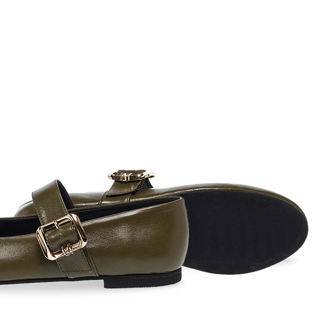 Women''s leather ballerinas by Maison Minrelle. Black leather ballet flats with buckle strap for added support and elegance.