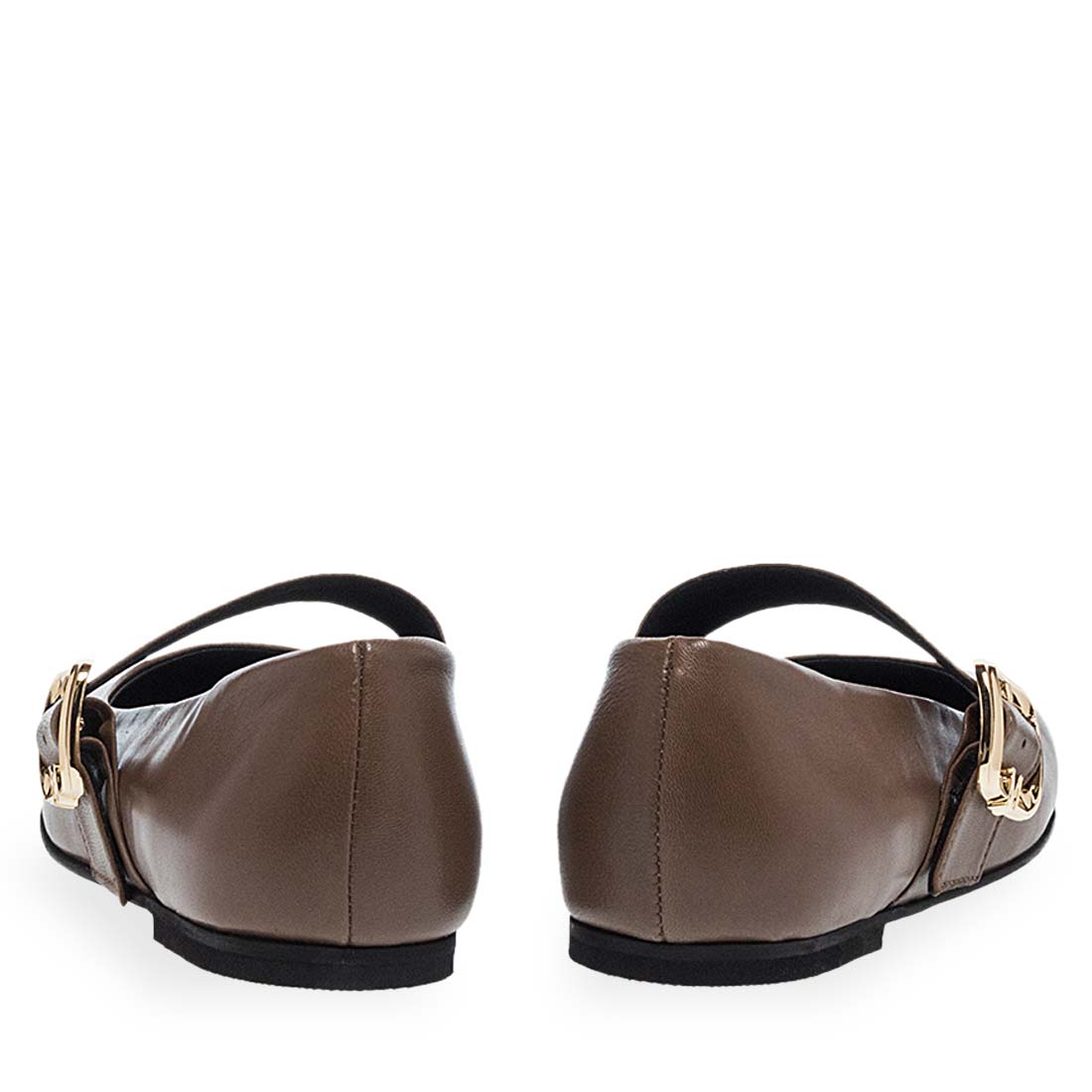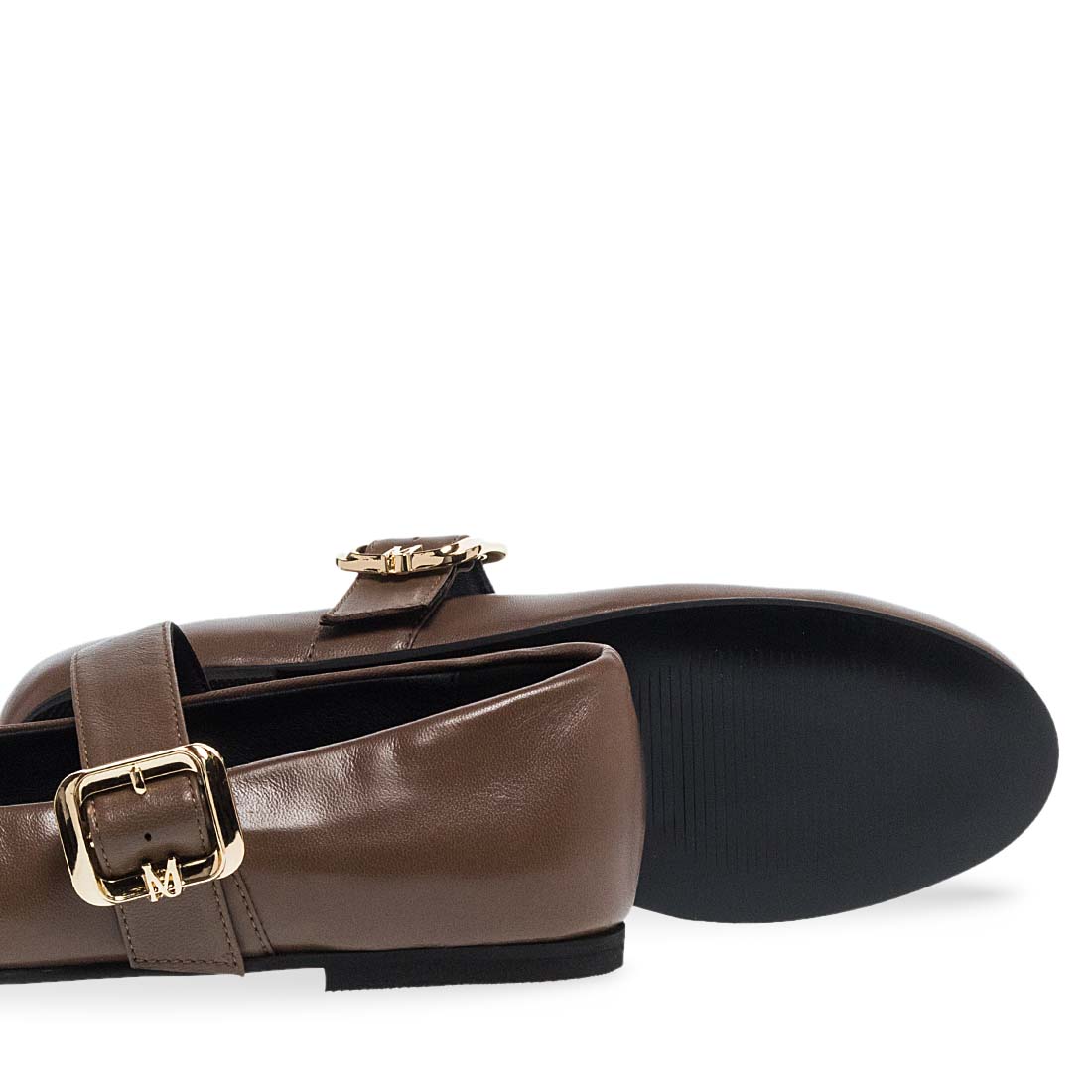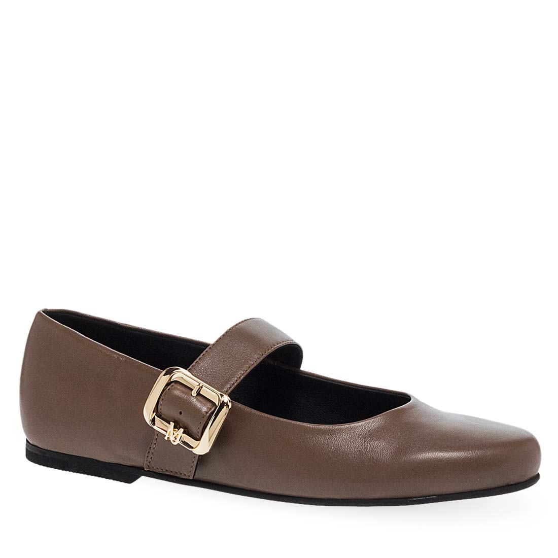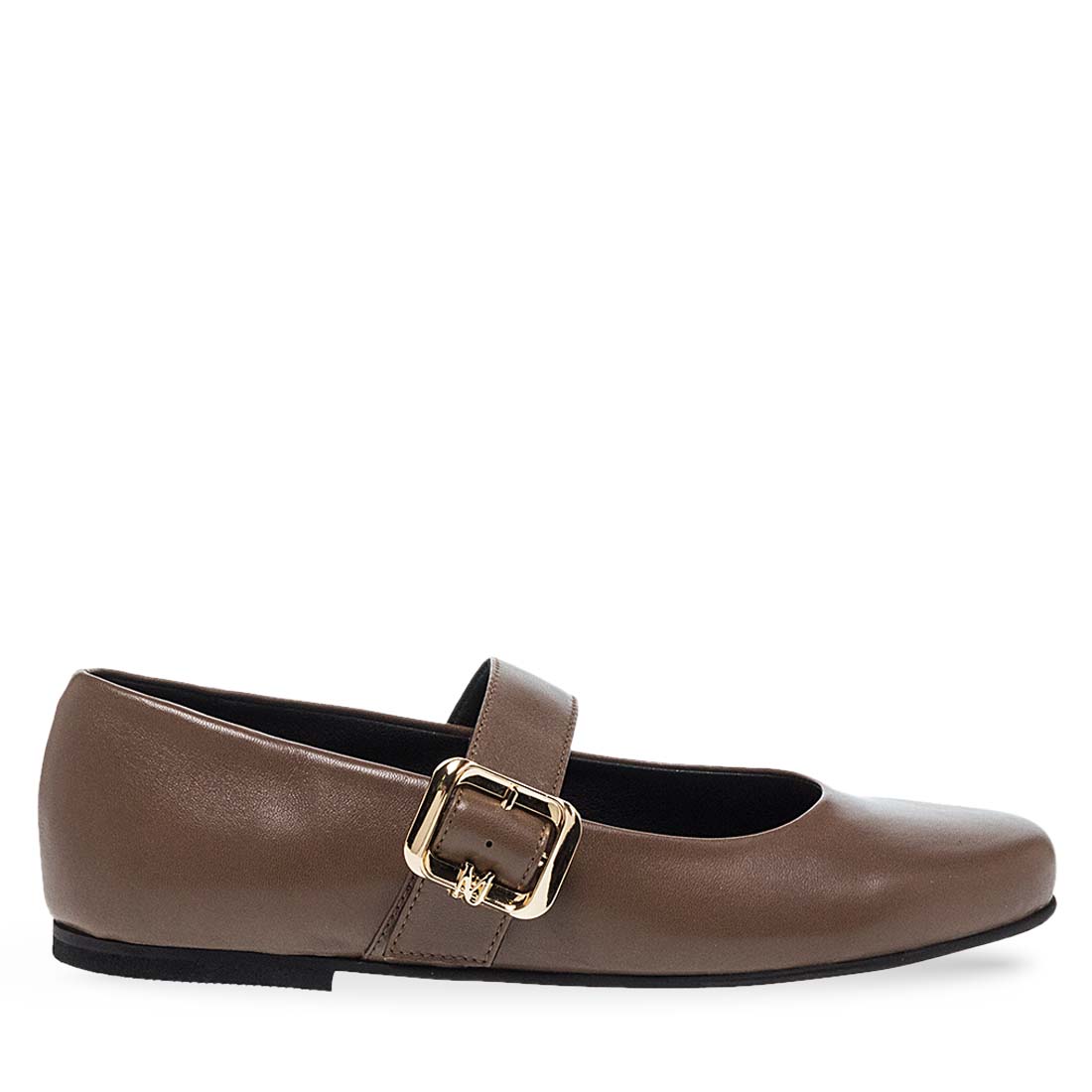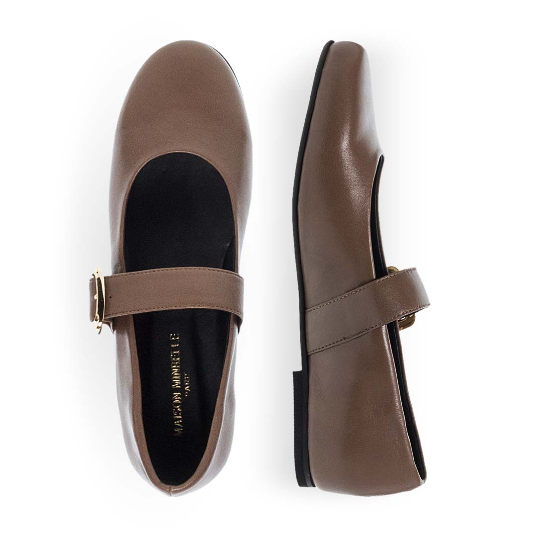 Women''s leather ballerinas by Maison Minrelle. Black leather ballet flats with buckle strap for added support and elegance.