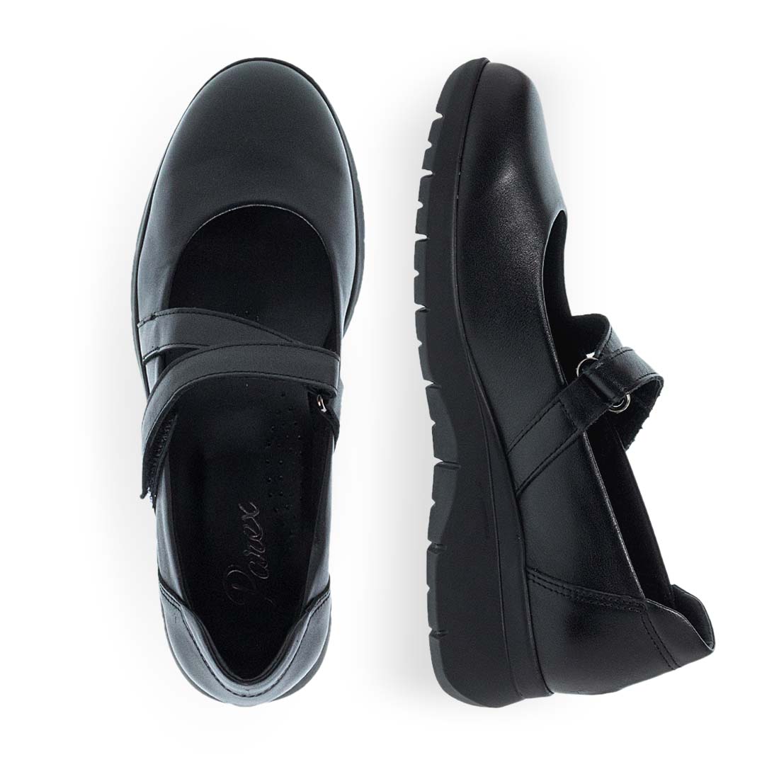 Women''s leather ballerinas by Parex. Women''s black Parex ballerinas with strap and anatomical sole, ideal for all-day comfort and elegance.