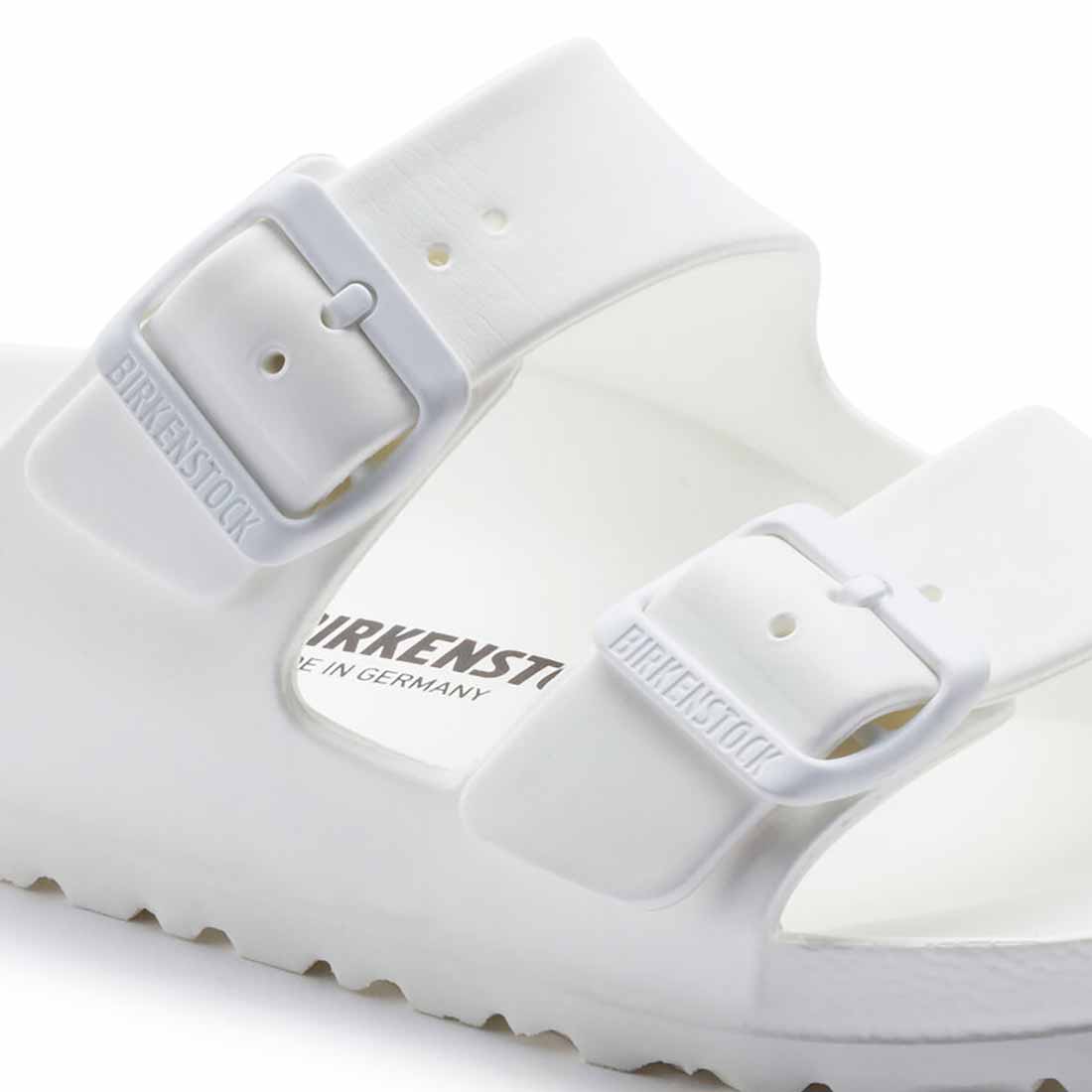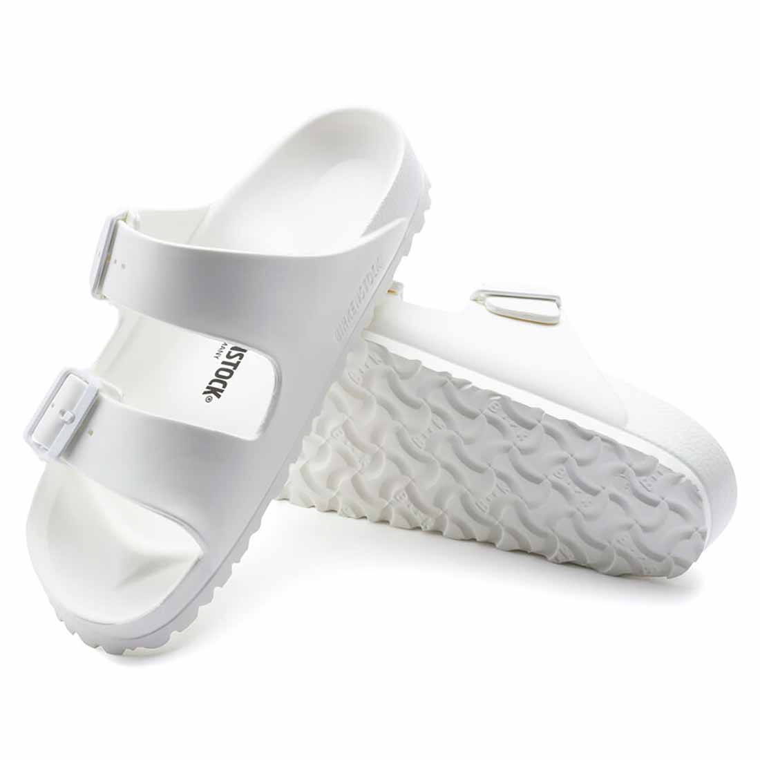 Birkenstock Arizona Eva slides with two buckle straps. Brands''''s timeless design in white color for a happy and comfortable summer. Eva sole offers durability and flexibility! Wear this design 24/7!