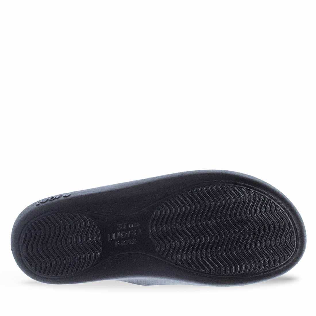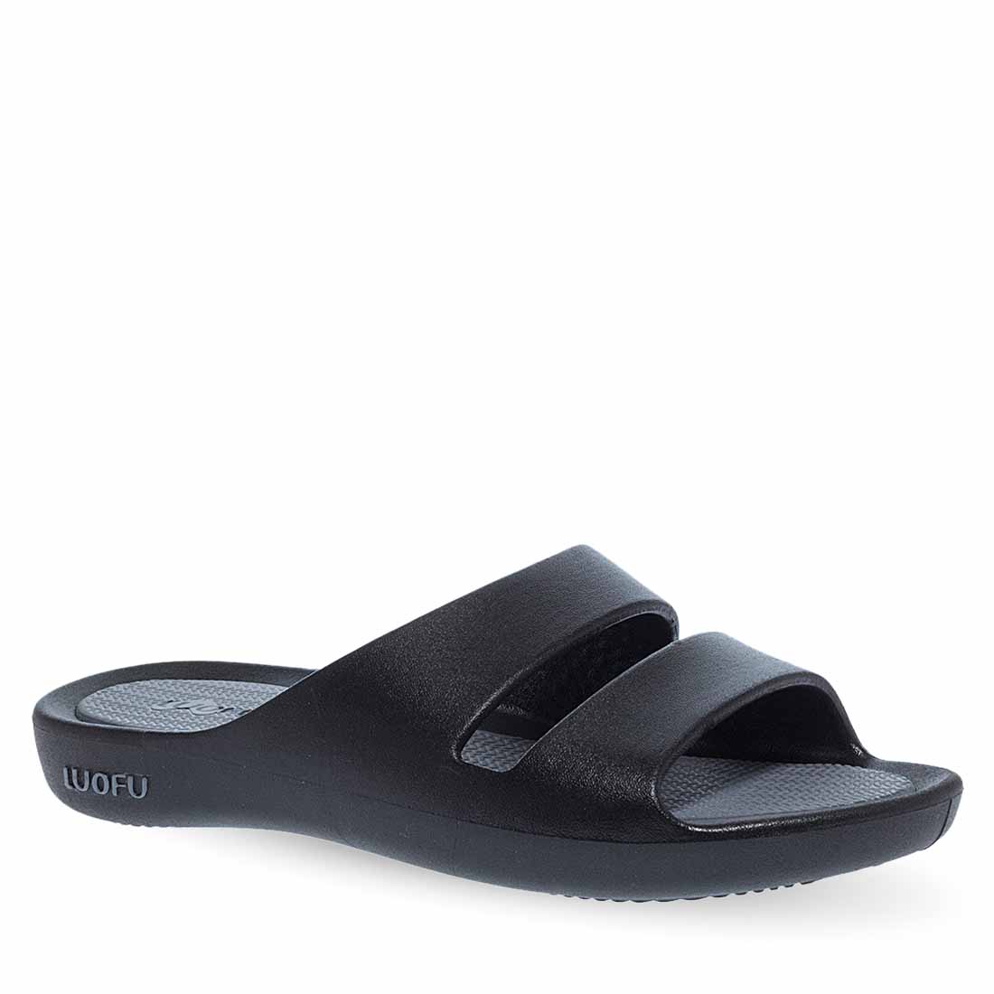 Luofu slides with two straps. Comfortable , non slip design with a different color insole. This design comes in 4 classic colors.