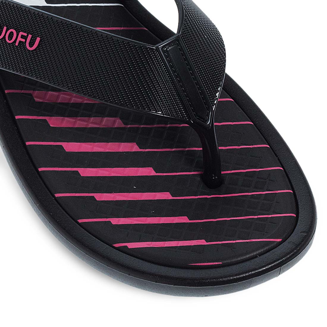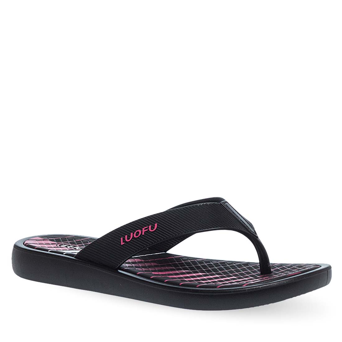 Flip flops Luofu with printed footbed and wide V-straps. Flat and lightweight for all day comfort. These flip flops are available in 4 colors.