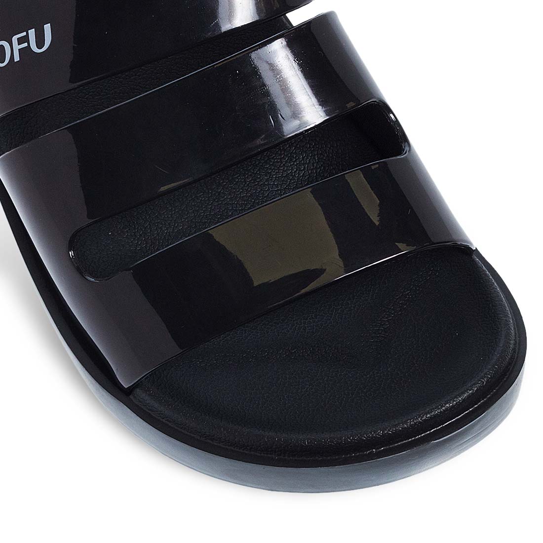 Soft, stylish and lightweigt slides with 3 straps are here to offer you the maximum comfort. Luofu slides in black color and in 3 more pastel hues. Choose now your favorite pair!
