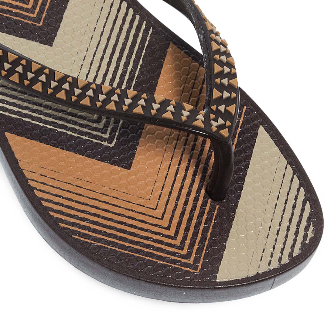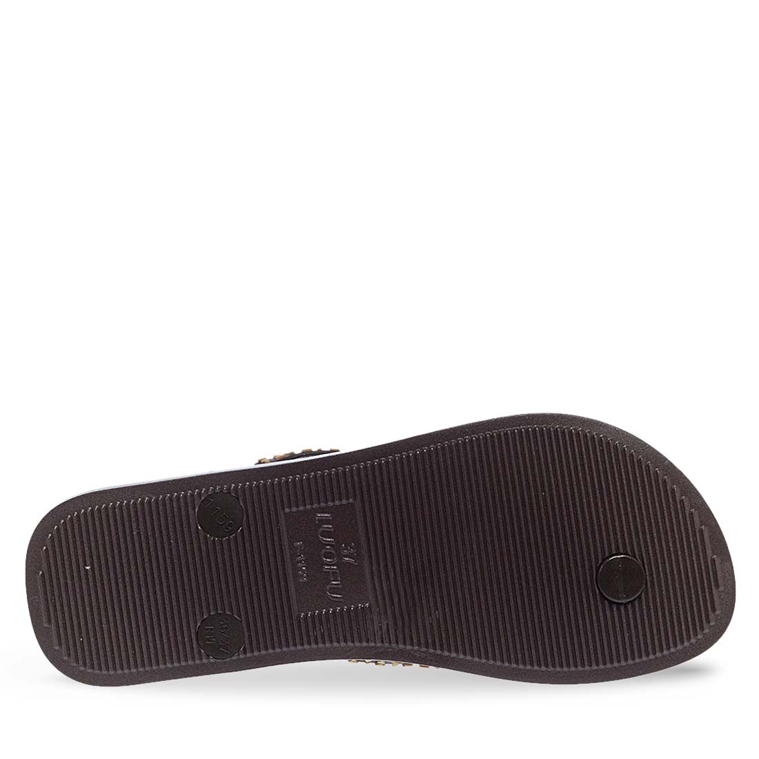 Colorful flip flops by Luofu. Flat flip flops with V-strap and printed footbed. Soft and flexible for all day comfort.