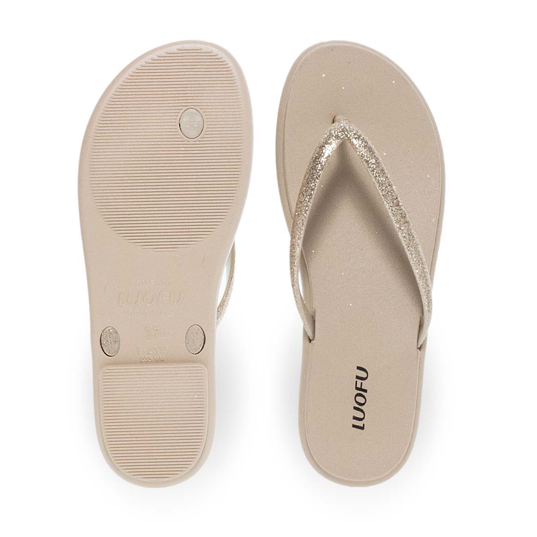 Soft and comfortable flip flops by Luofu. V shapped design. Glitter details. Suitable to wear day to night. A good mix of comfort and style.