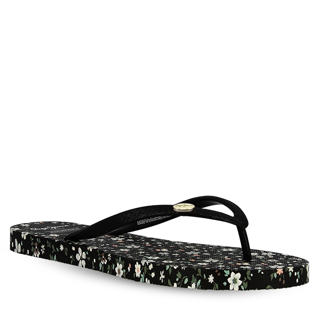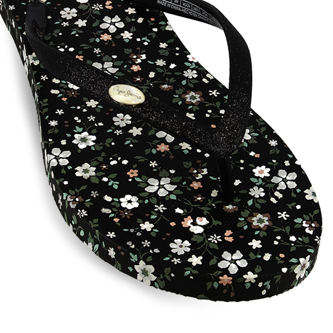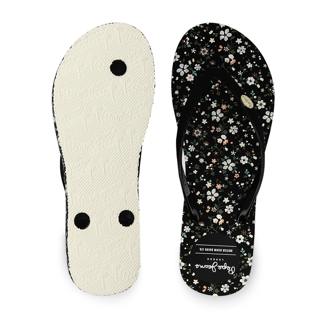 Escape this summer in these comfy flip flops by Pepe Jeans. Black flip flops with printed footbed. Durable outsole. Easy to fit.