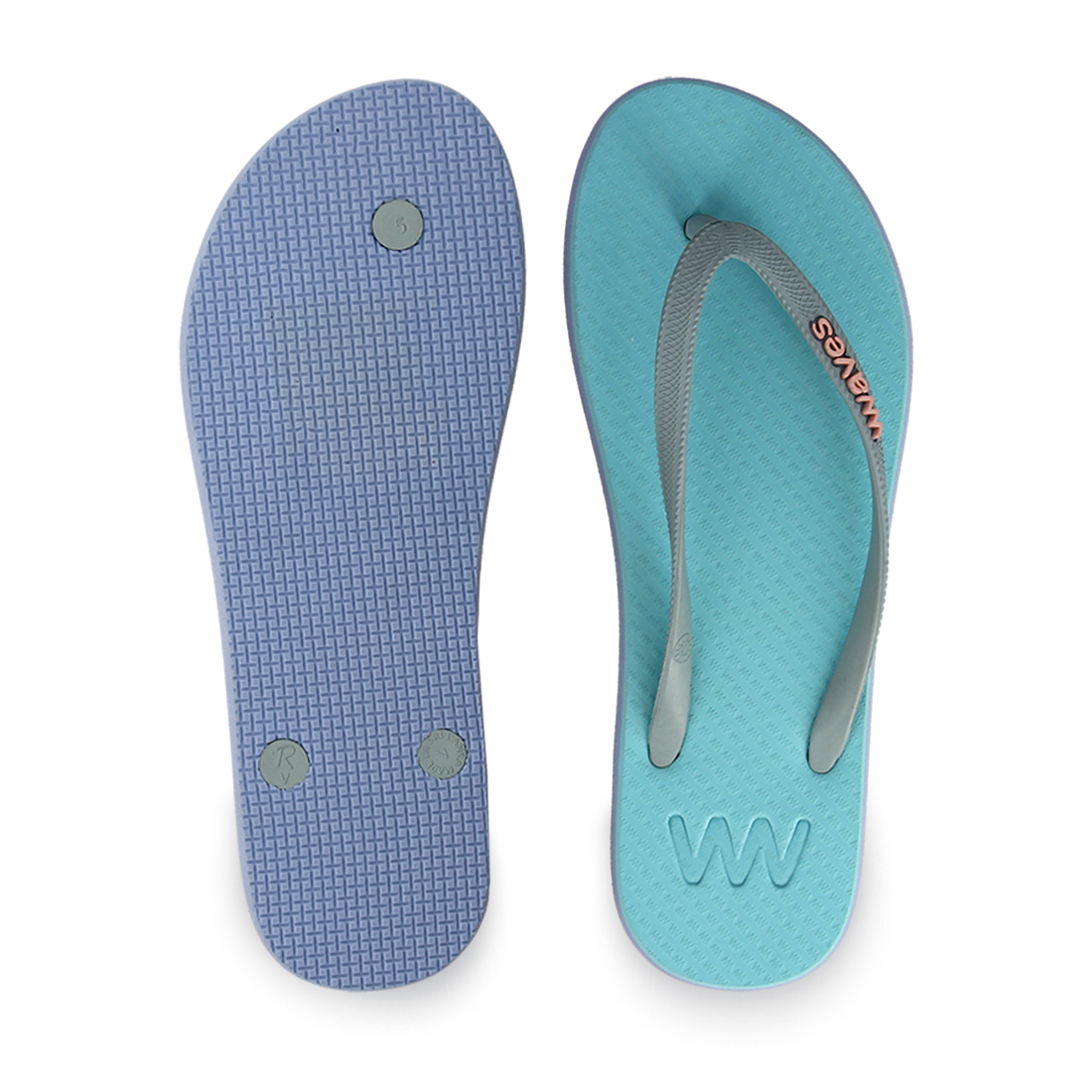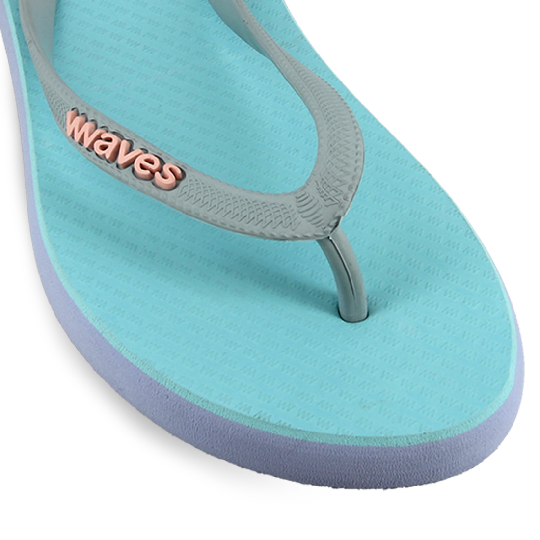 Modern flip flops by Waves. Rubber sole and logo detail at the side.Excellent combination of materials and colors. Easy to wear. The official pairs will have the correct sizing printed on the size tag.