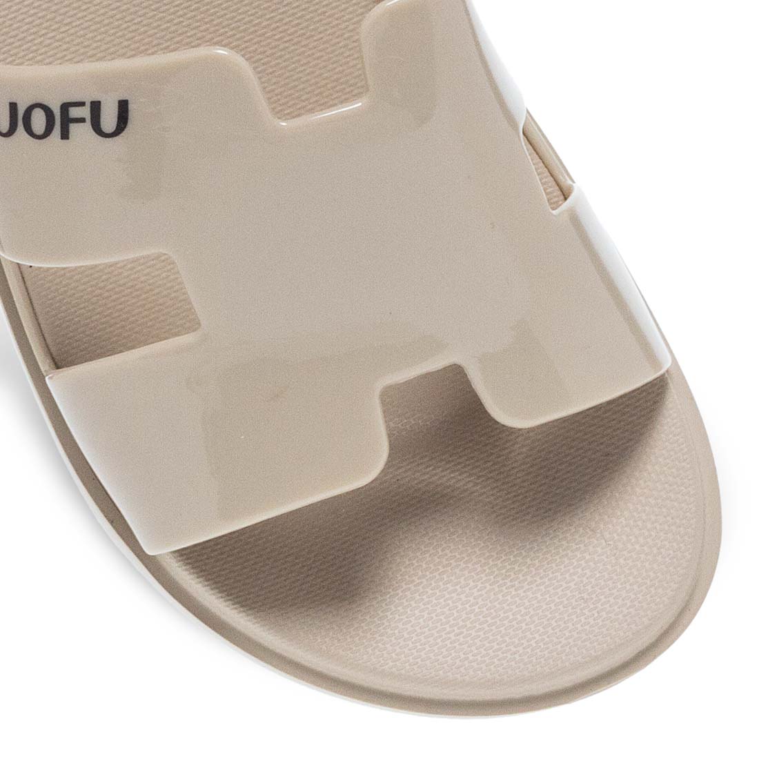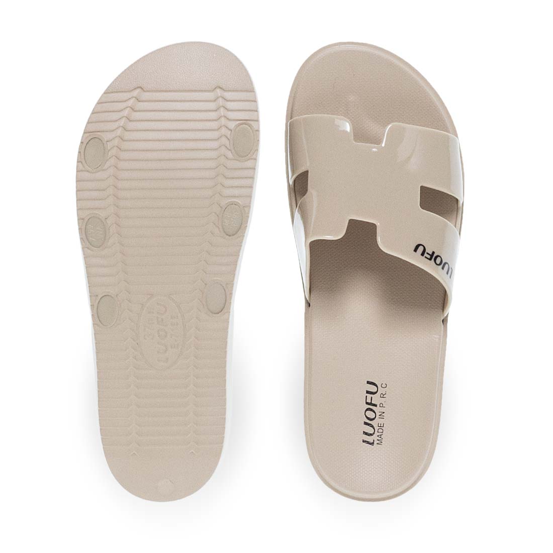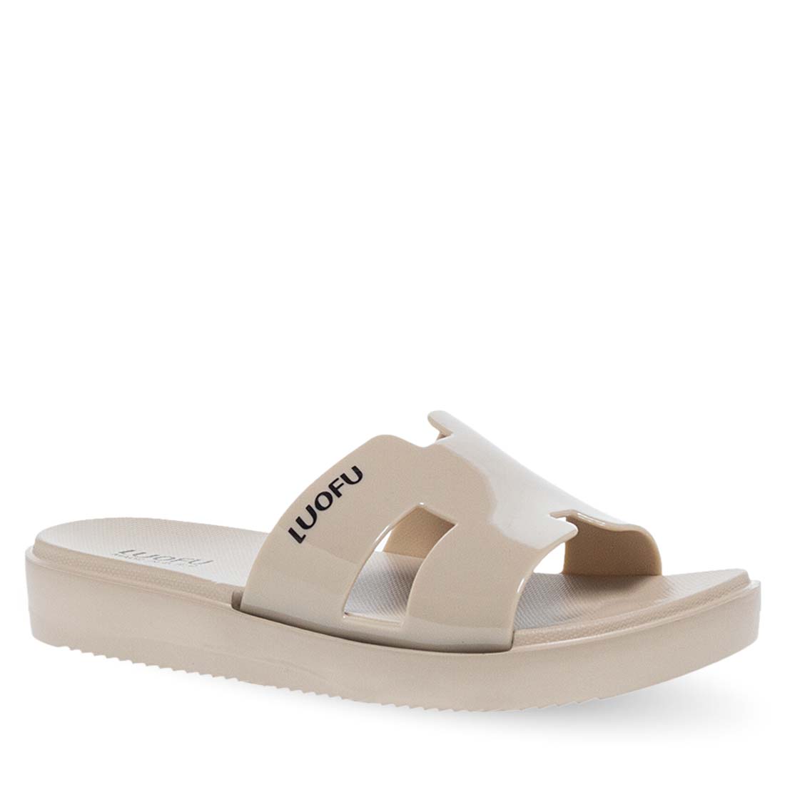 Monochrome slides by Luofu. Made from plastic. Synthetic, comfortable sole. This model is easy to wear and clean. Soft insole.