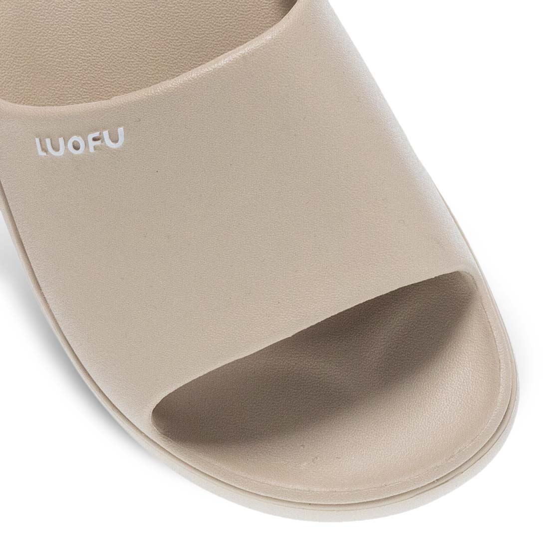 Women''s monochrome slides by Luofu. Comfortable slides designed with high level of quality and comfort. Wide strap on the upper. Relaxed fit.