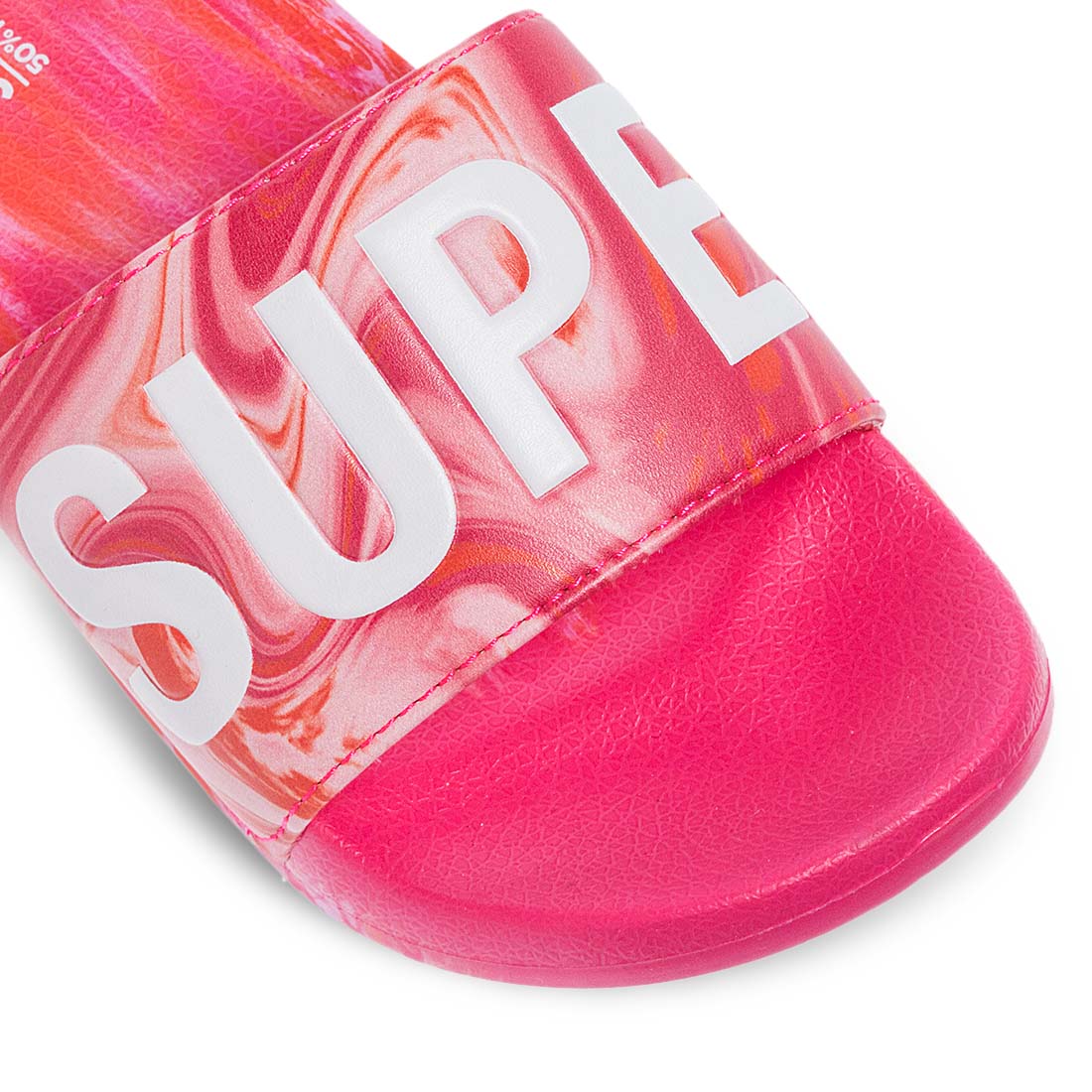 Give cool vibes with these slides for women by Superdry summer collection. Available in pink color with modern color design. Wide strap on the upper part, soft insole and stable non-slip sole.