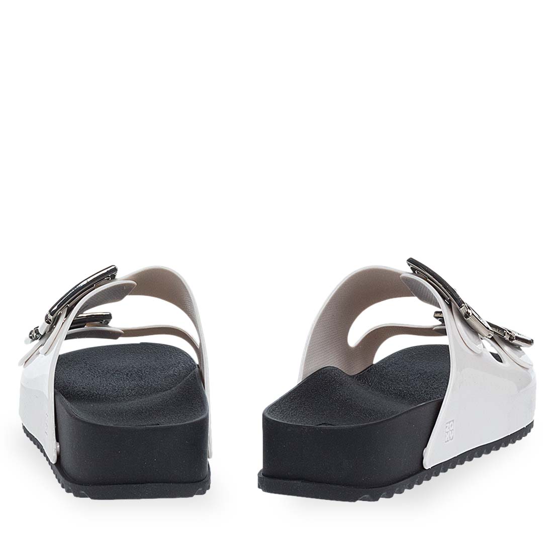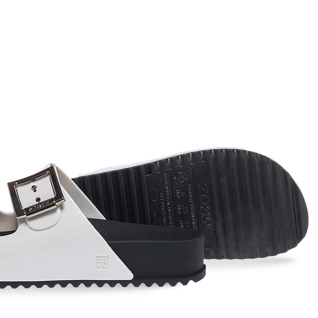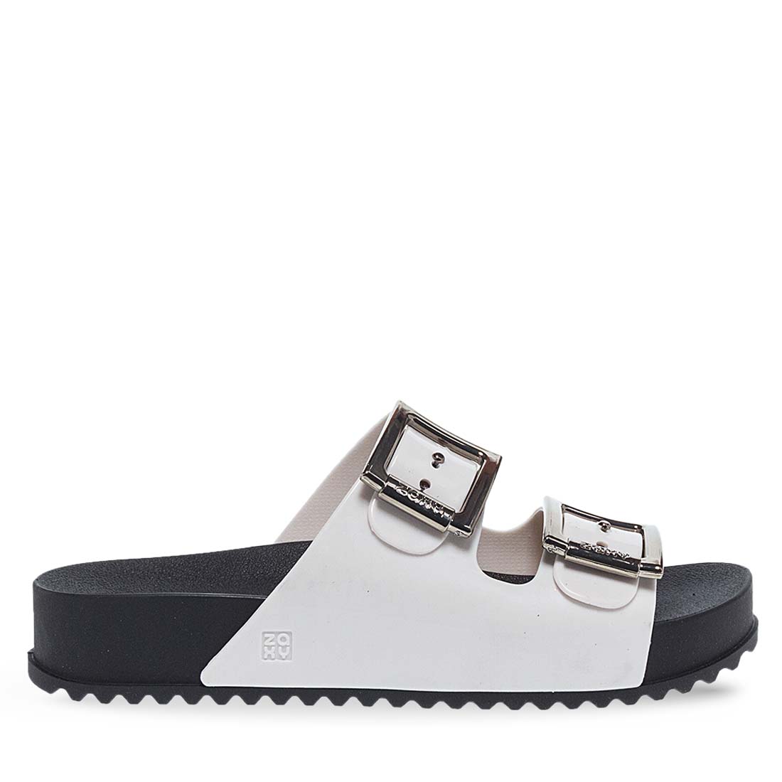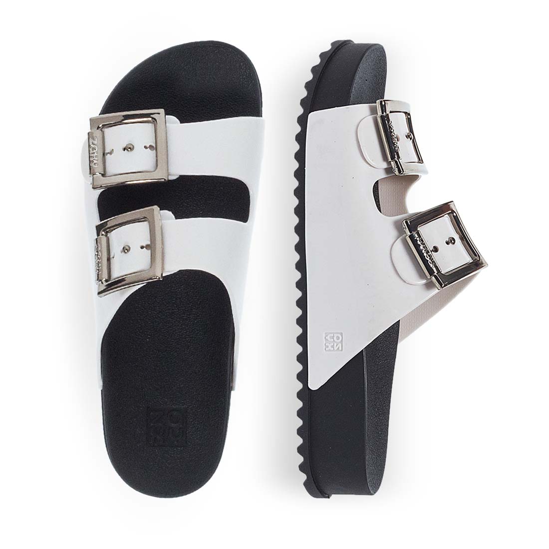 The ultimate choice of the season are these white women''s double-strap flip-flops by Zaxy. They have a double band with a metal buckle strap fastening. Excellent combination of materials, soft insole and stable sole. This style will look great with your fresh wardrobe. Easy to wear and relaxed fit.