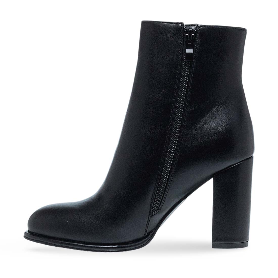 Women''s ankle boots by Exe. Women’s Exe ankle boots made of synthetic leather, featuring a high block heel and minimalist silhouette. Their sleek black tone makes them perfect for stylish all-day looks. Side zipper for easy fastening.
