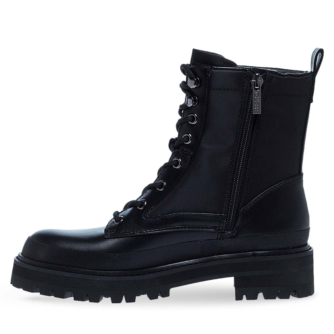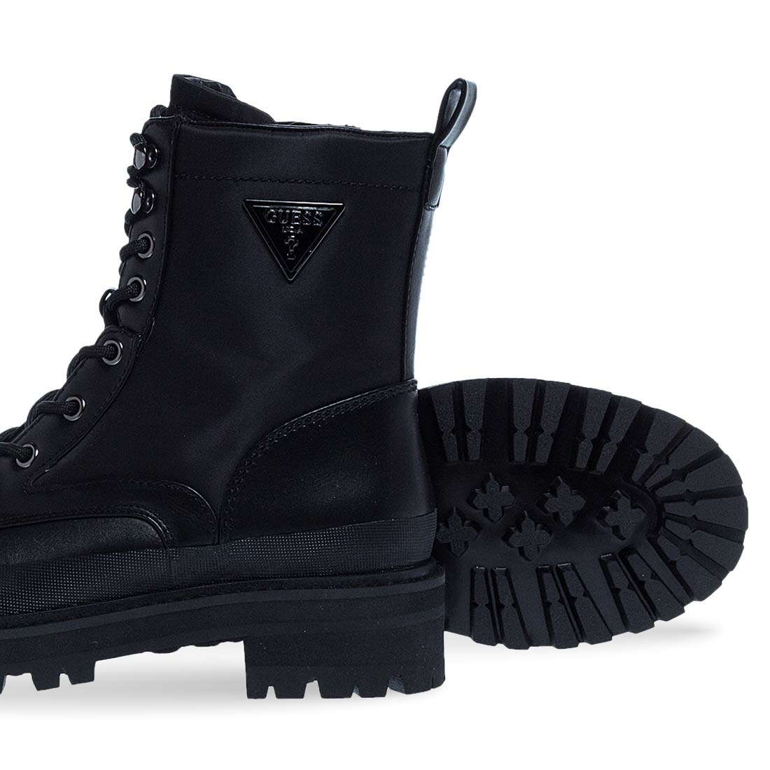 Update your rock style with these ankle boots for women by Guess in black color. Lace up design. Soft insole and stable tractor sole for steady steps. They provide comfort and stability to winter steps. Premium quality eco leather.