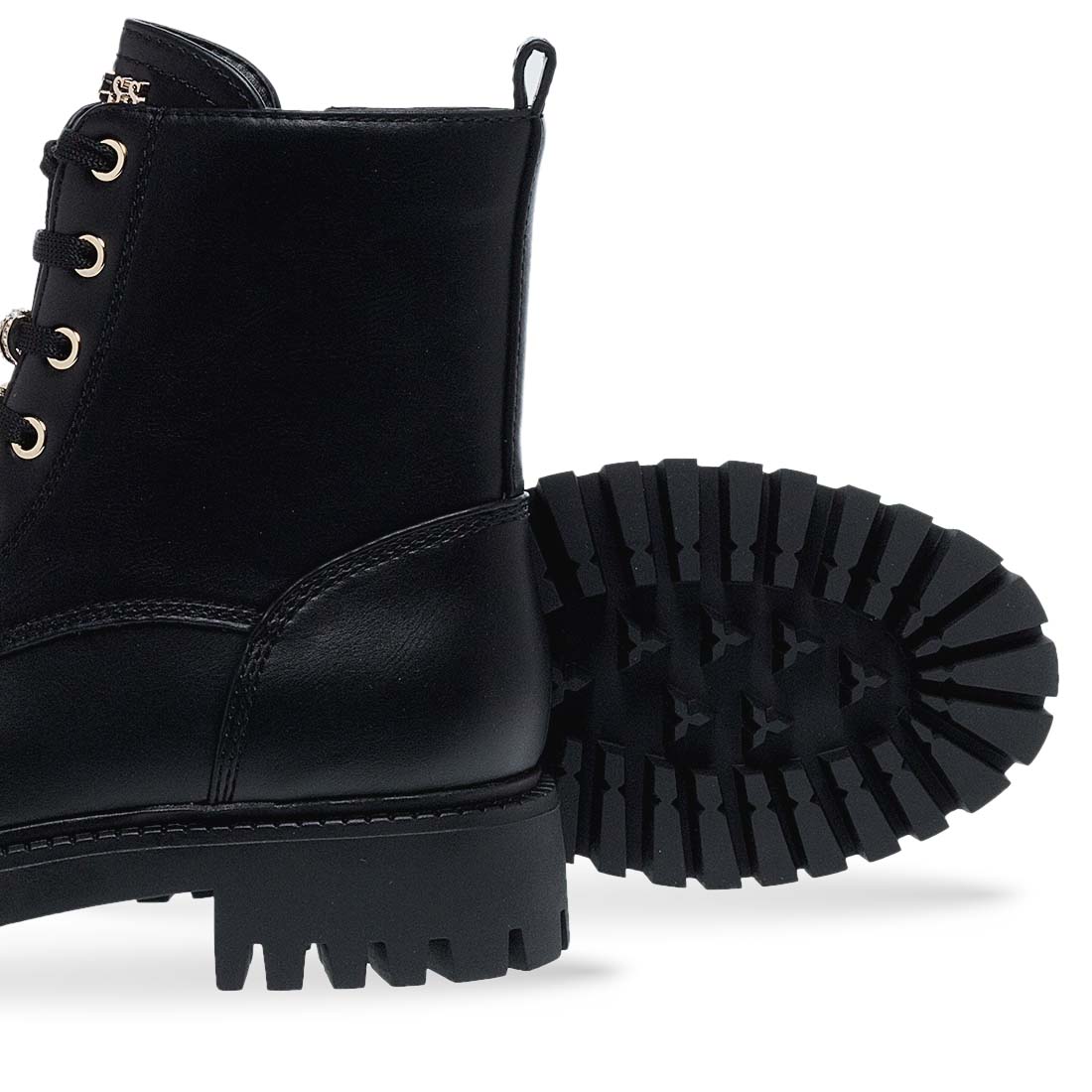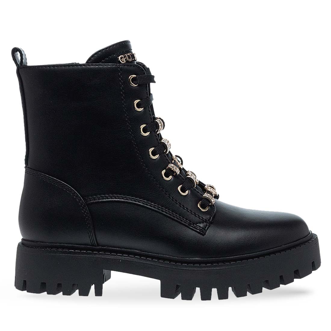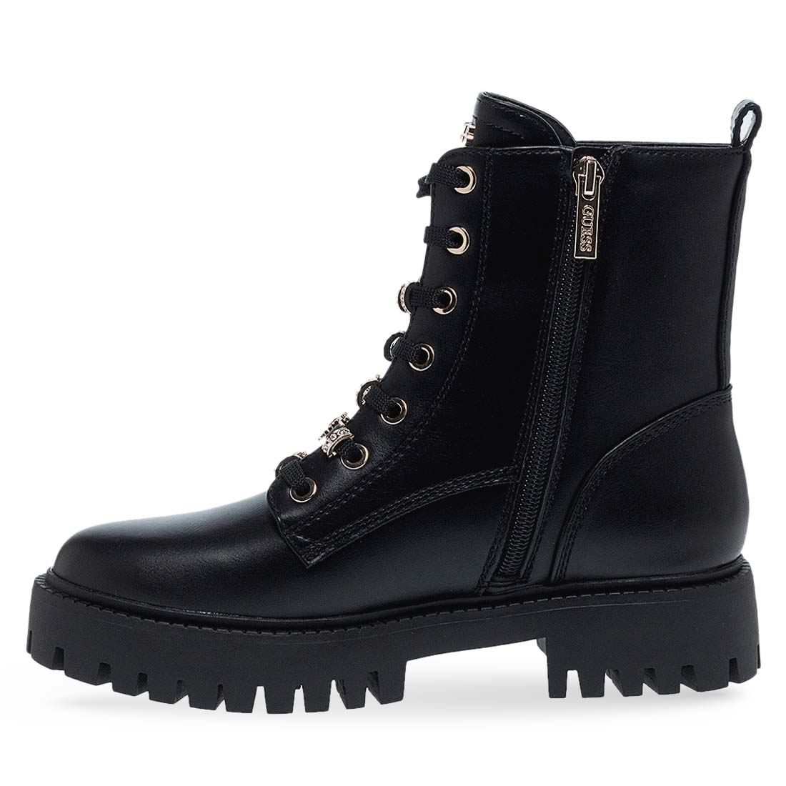 Women''s ankle boots by Guess. Women’s black lace-up combat boots with side zipper and lug sole. A bold design for urban style.