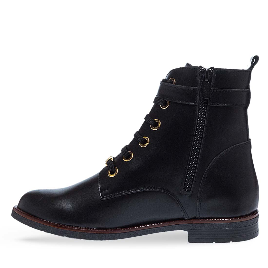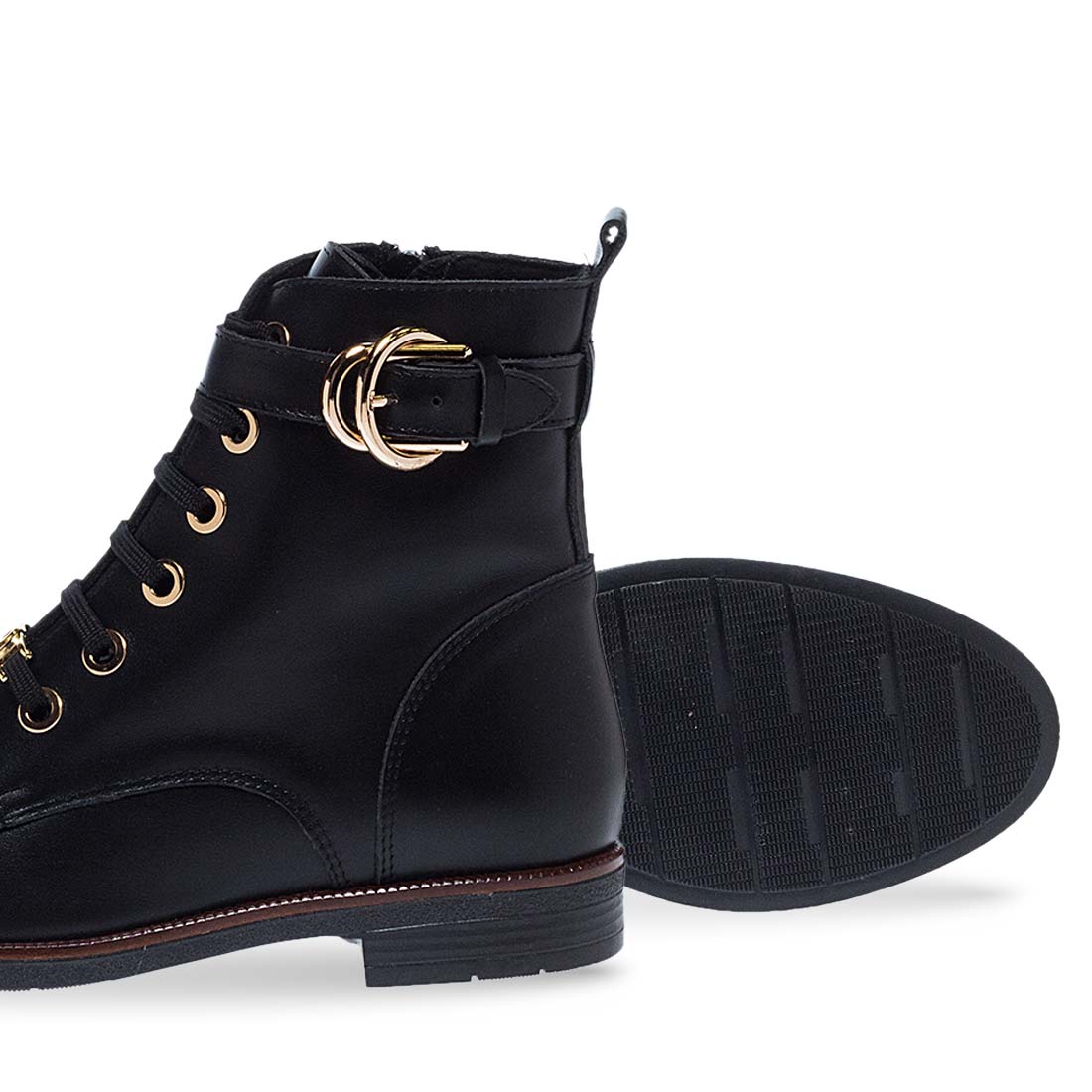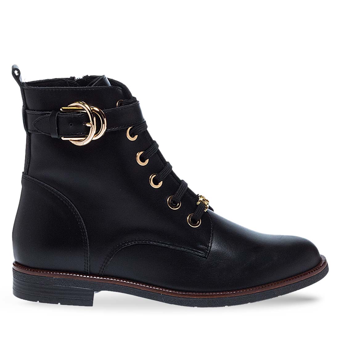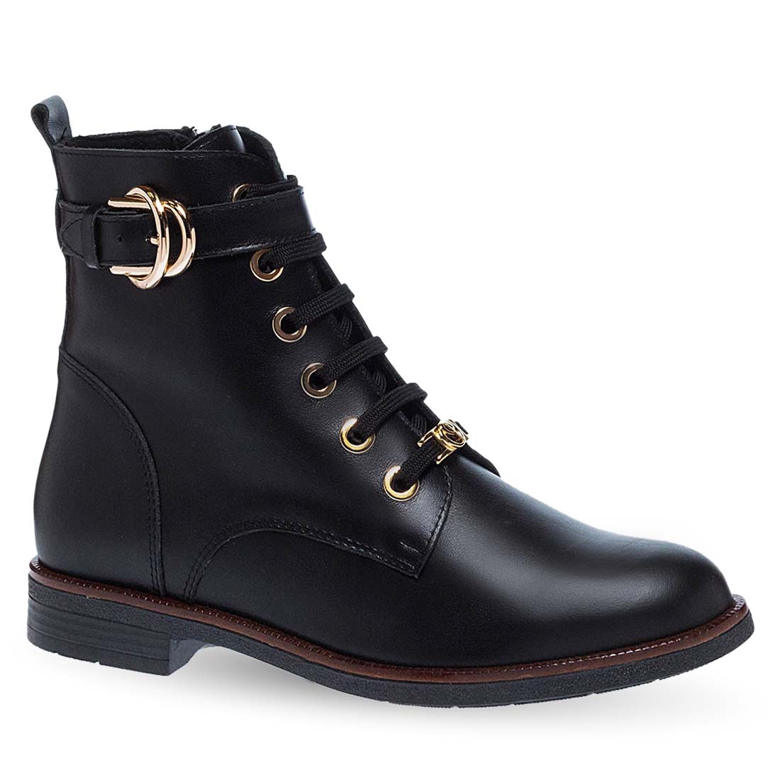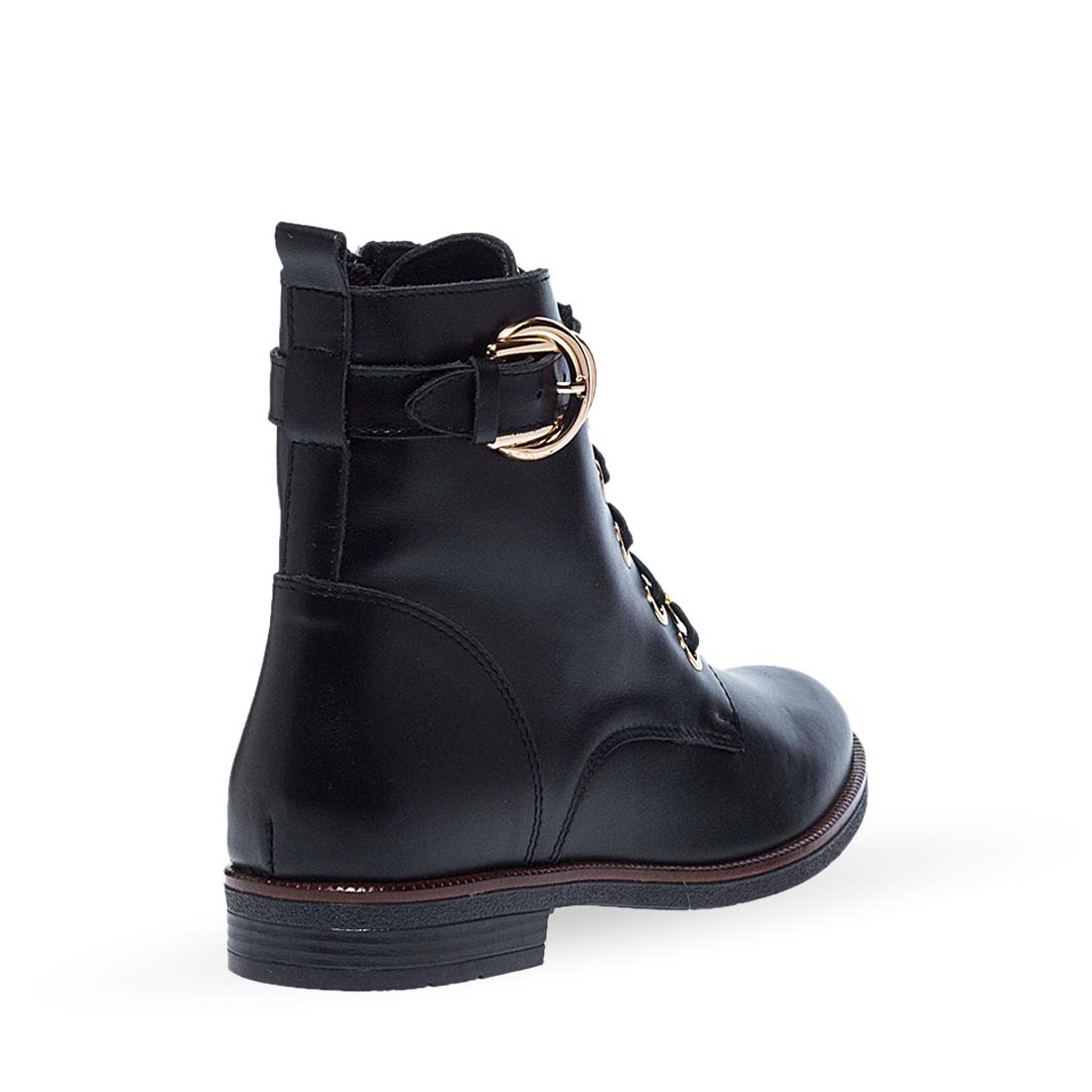 Leather ankle boots by Parex . They stand out for the decorative belt with buckle strap fastening. Lace-up detail. Leather footbed for comfortable and stylish steps.