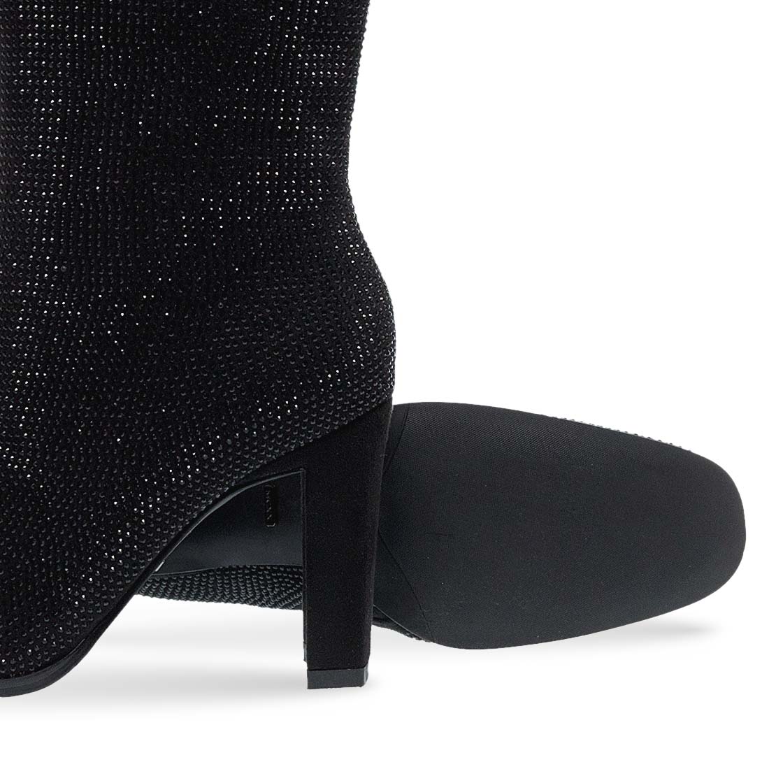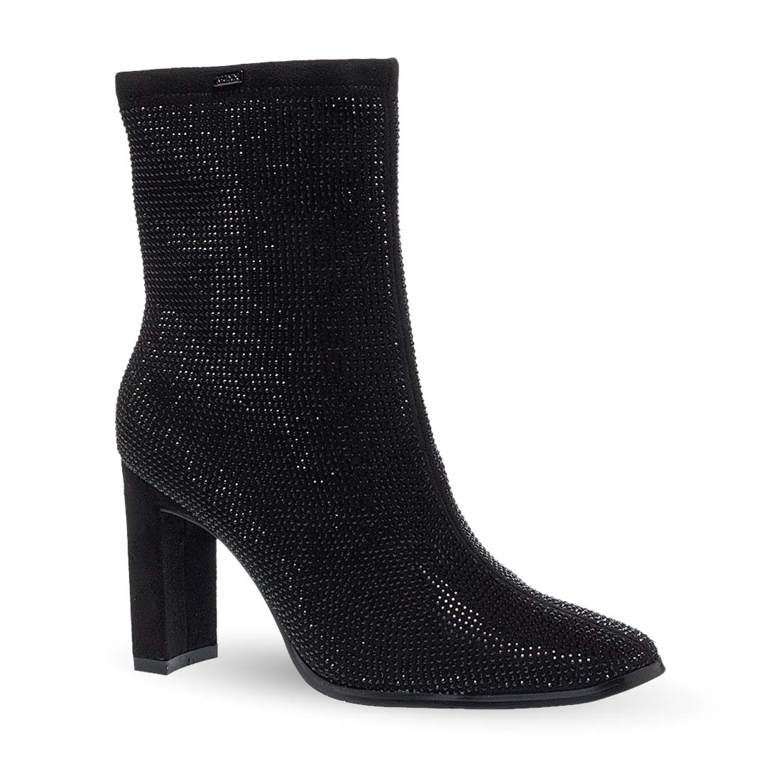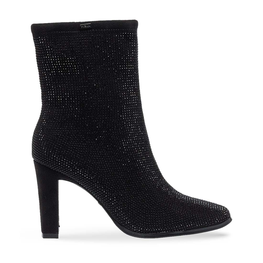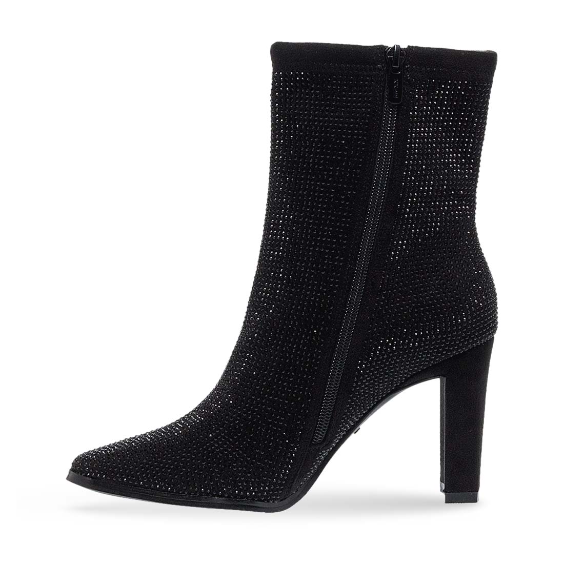 Women''s ankle boots by Mexx. Women’s black high-heeled boots with rhinestones and pointed toe. Perfect for glamorous looks and night outs.