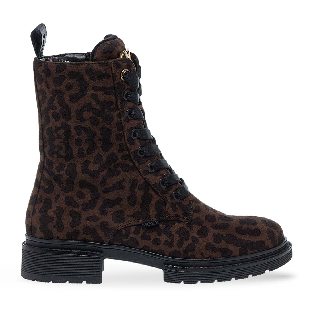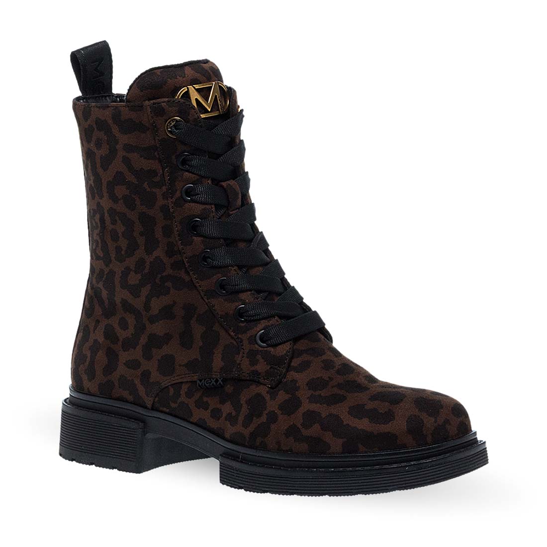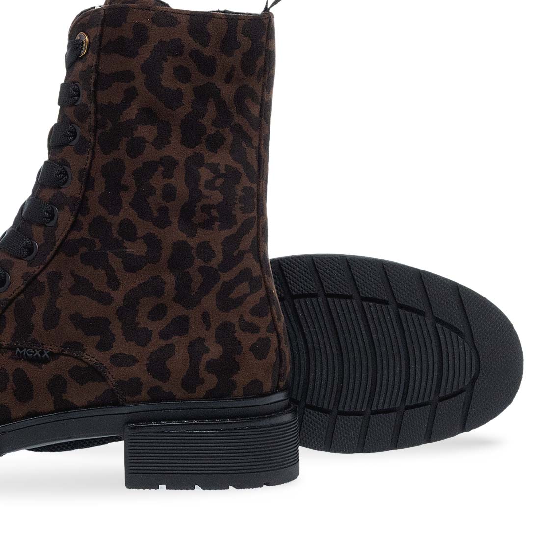 Women''s ankle boots by Mexx. Women’s Mexx ankle boots featuring a striking animal print and lace-up design. Perfect for those who love to stand out with confidence.