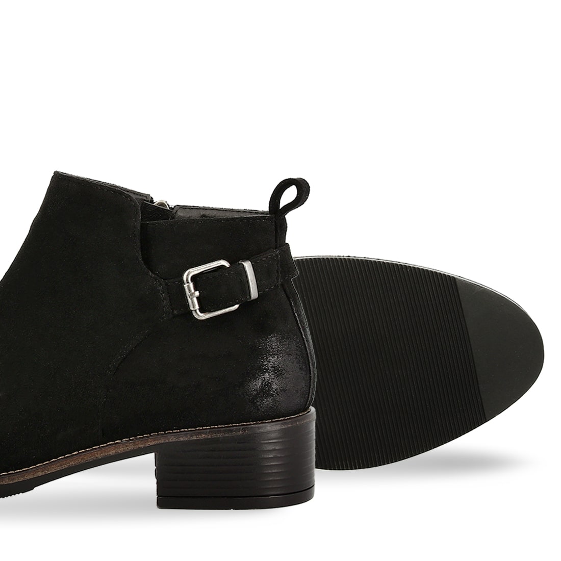 These women''s ankle boots by Parex are designed from fabric and synthetic leathered footbed for comfy walks. With soft and non-slip sole. They have a decorative buckle on the back and zipper inside for comfortable fit.