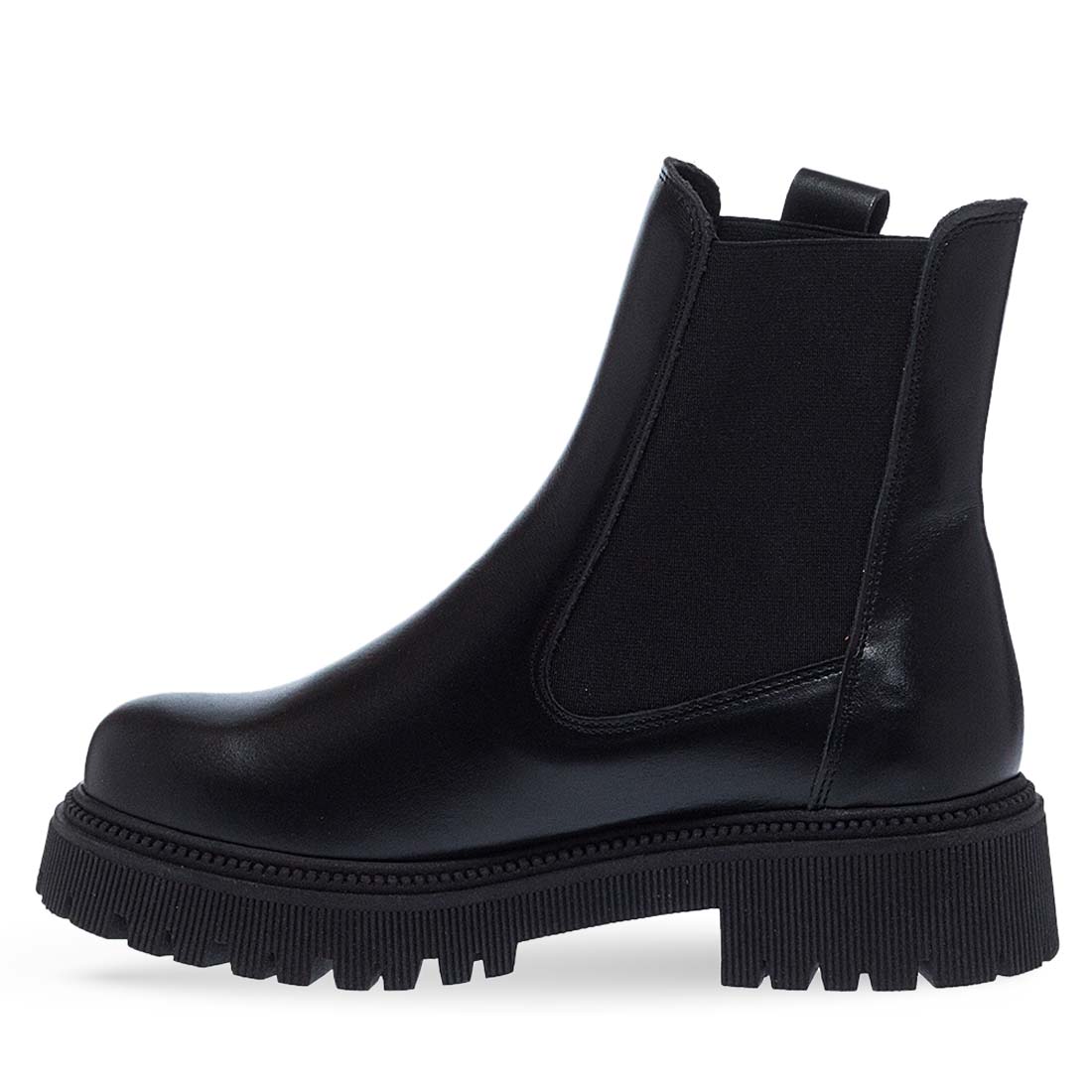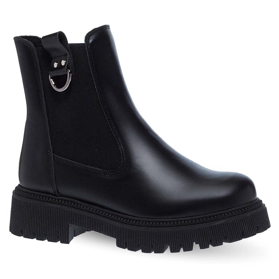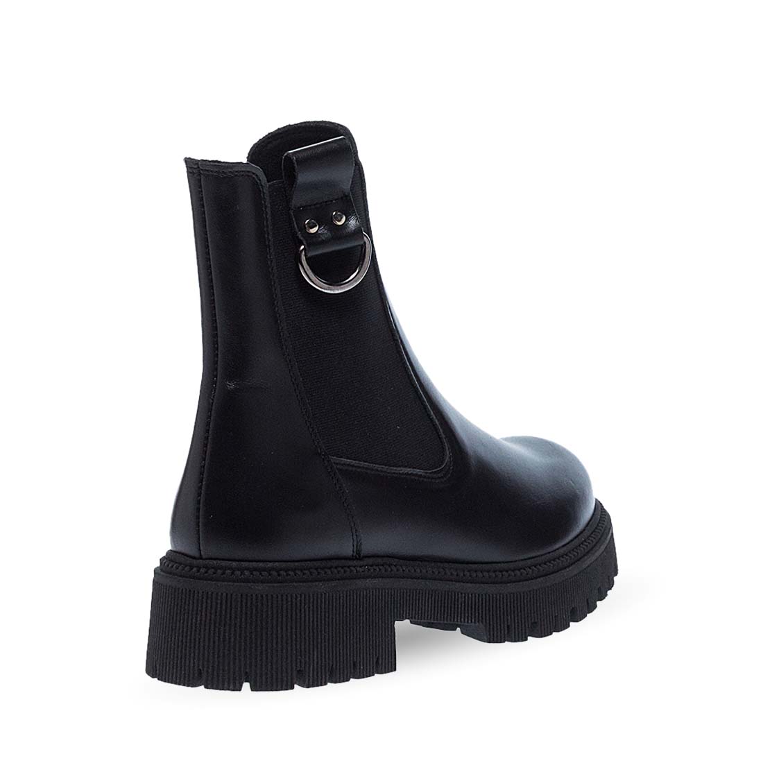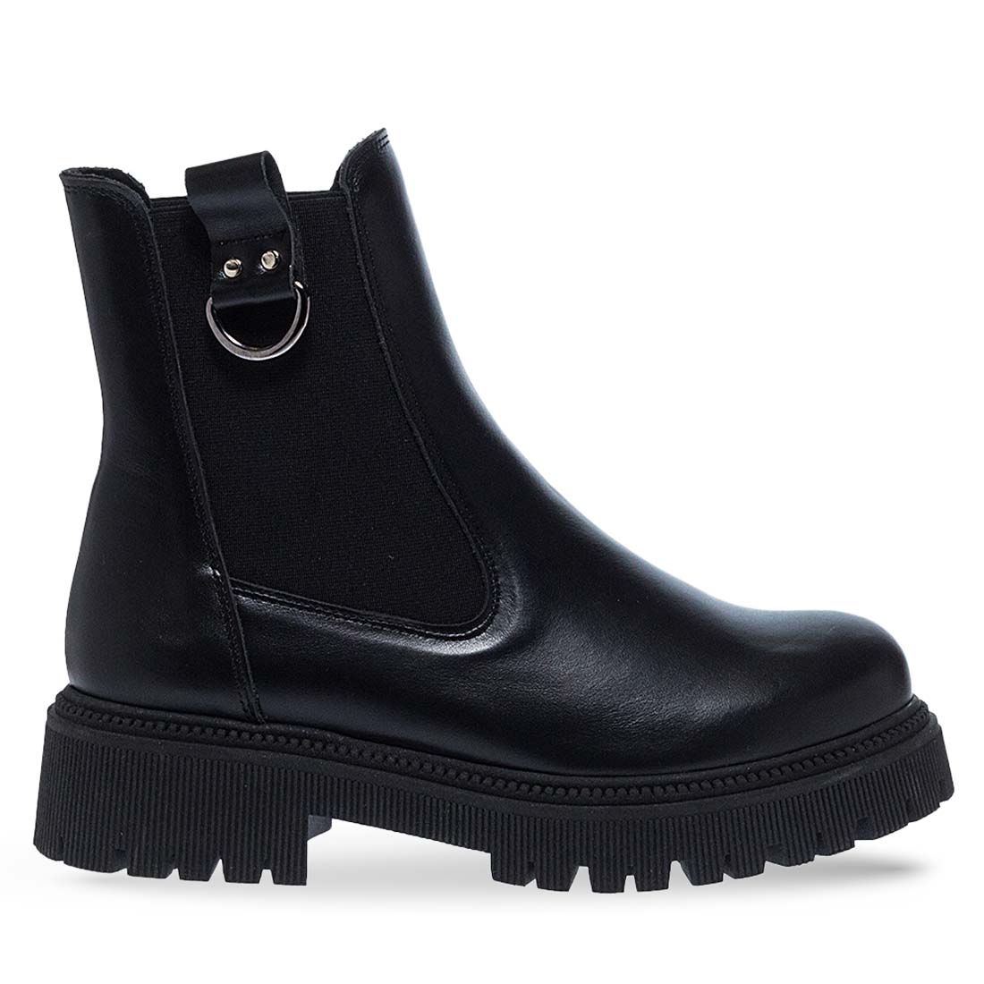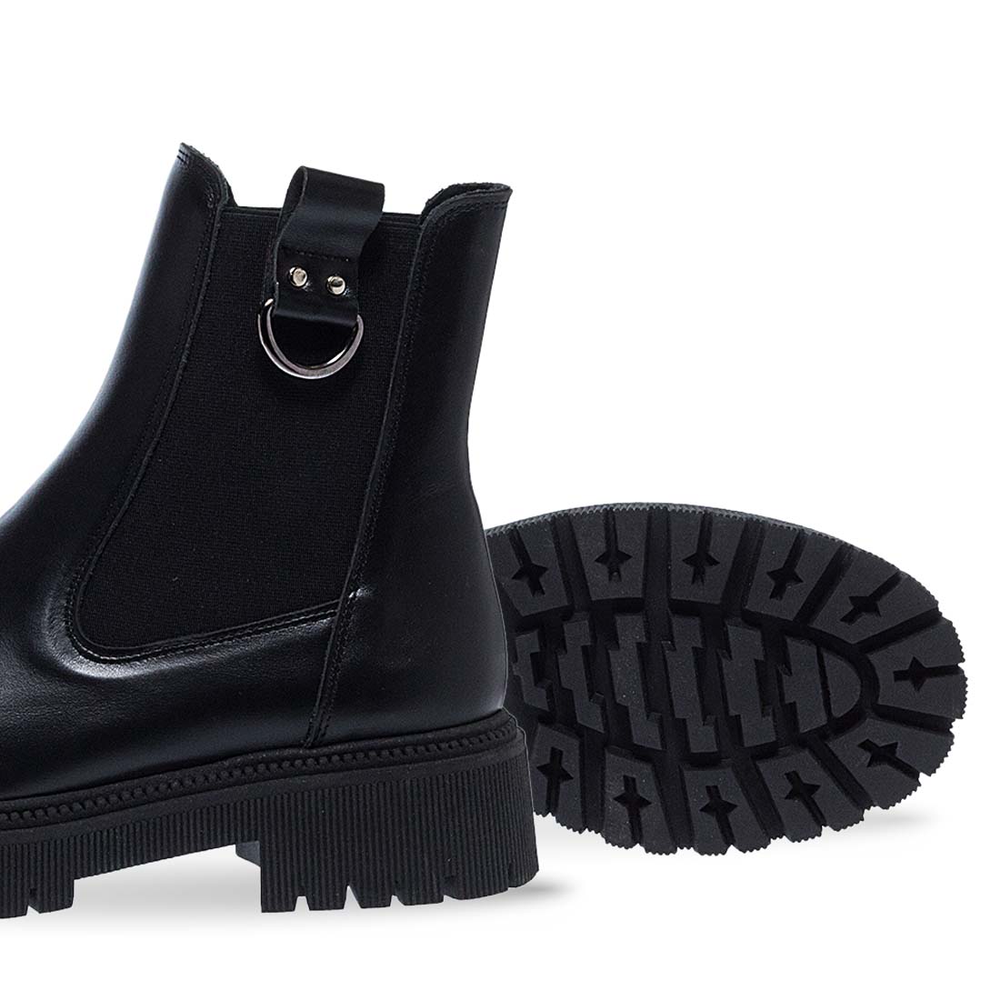 This is the go-with-anything style, these black chelsea boots feature a metal trim and a chunky sole. Rounded toe. Flat sole. Low block heel. Leather ankle boots.