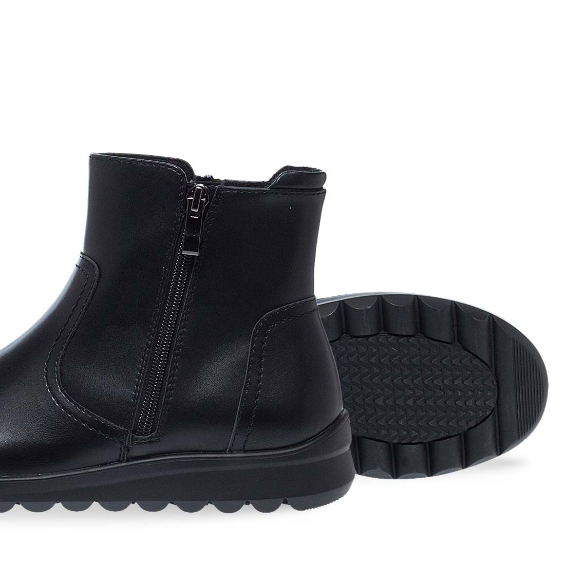 Black ankle boots by Parex with zip. Monochrome design. Soft insole. They can keep your feet more comfortable and warm. A good mix of comfort and style.