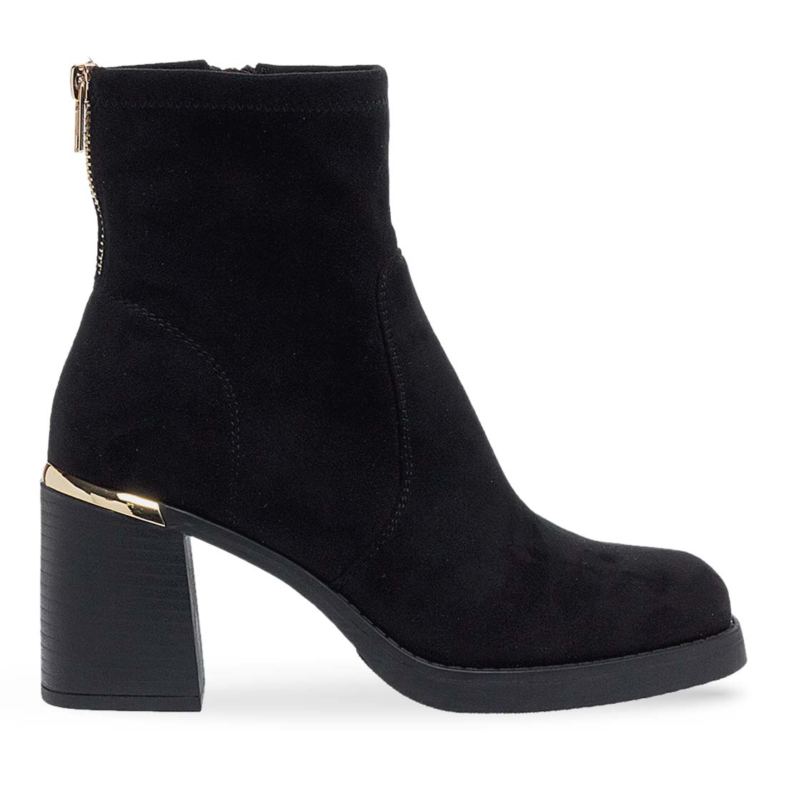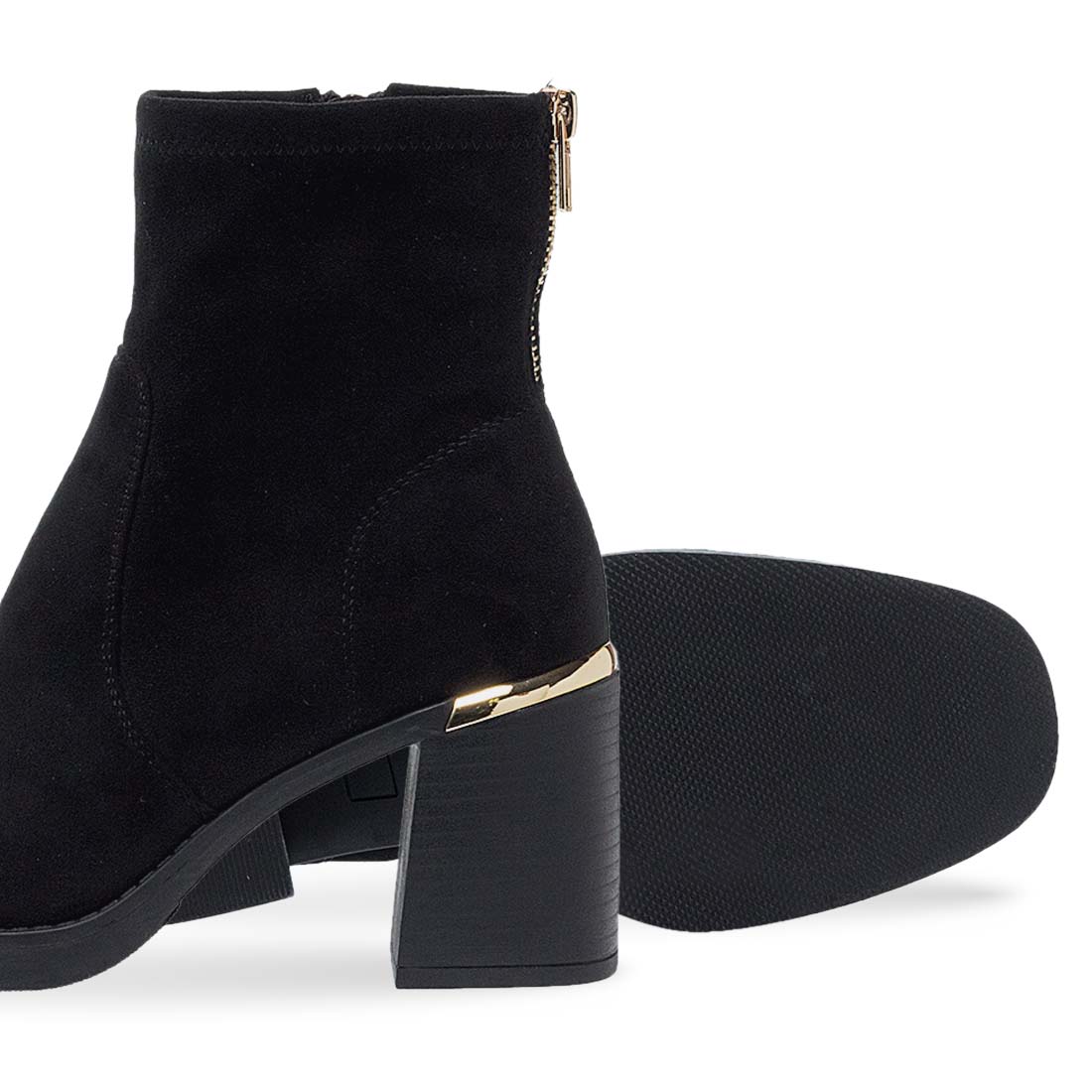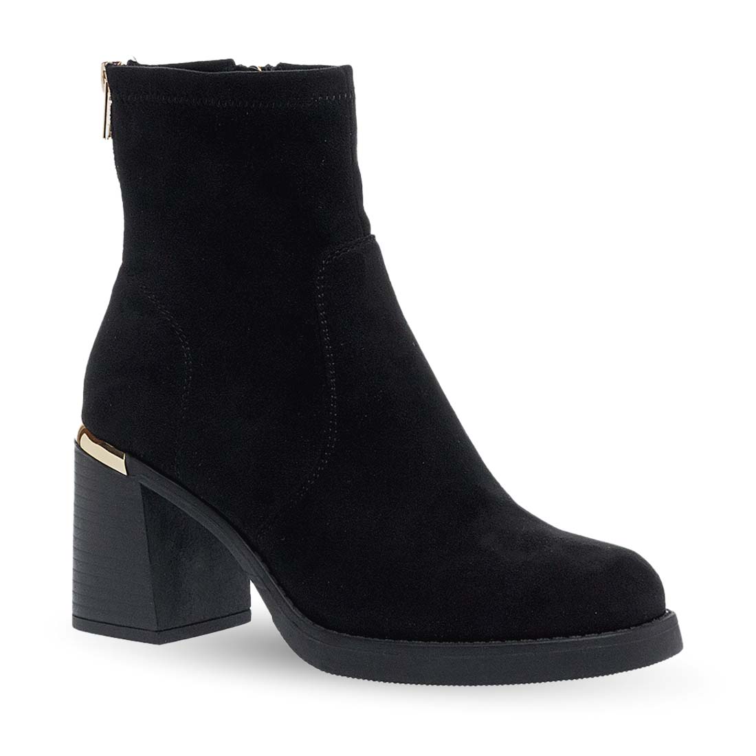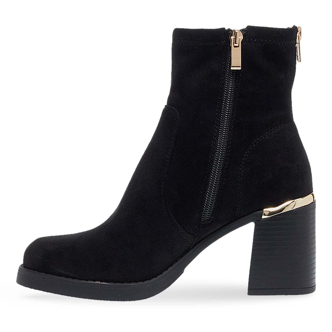 Women''s ankle boots by Parex. Women’s mid-heel ankle boot in black with side zipper and gold heel detail. A versatile choice for both dresses and pants.
