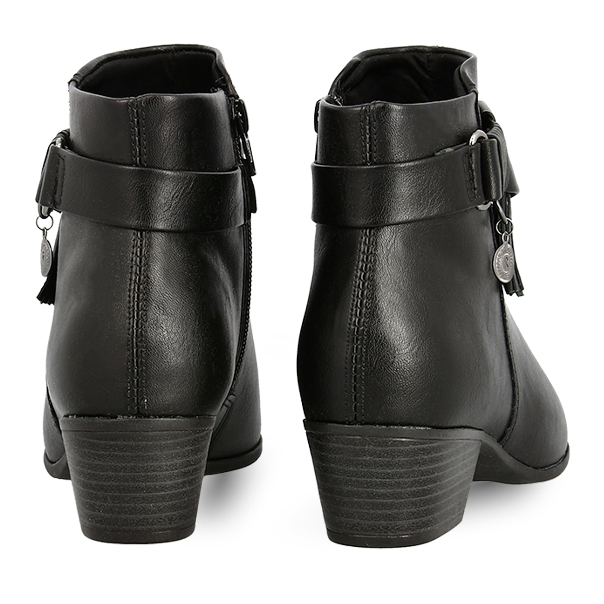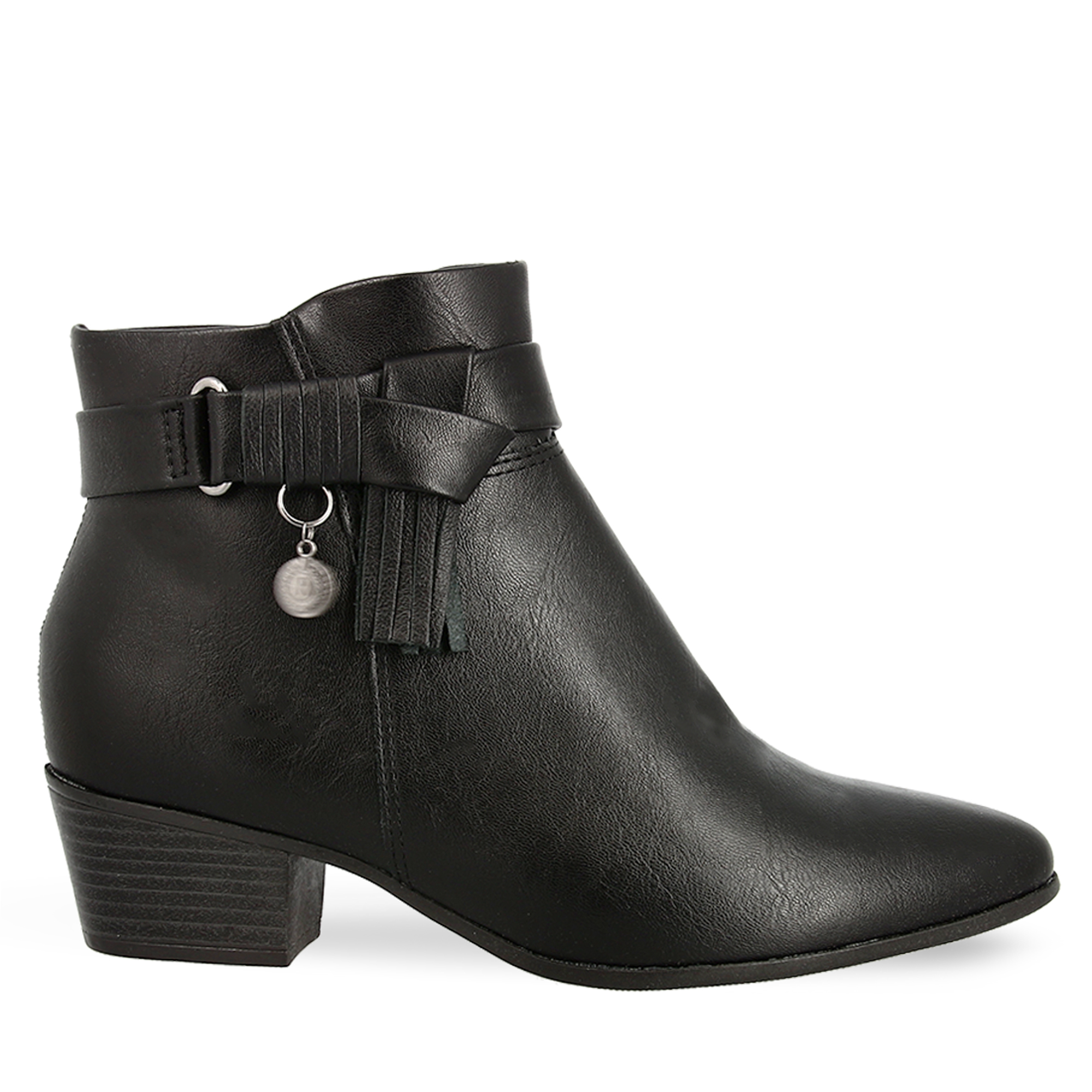 These women''s ankle boots by Ramarim are made from high quality synthetic leather with soft and comfortable footbed. Strap detail around the ankle with fringes. Zip on the side. The perfect choice to upgrade your office look.