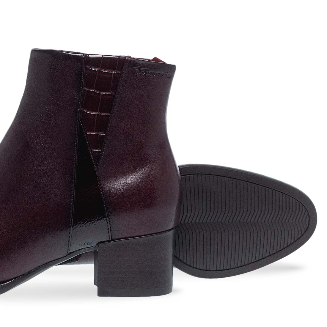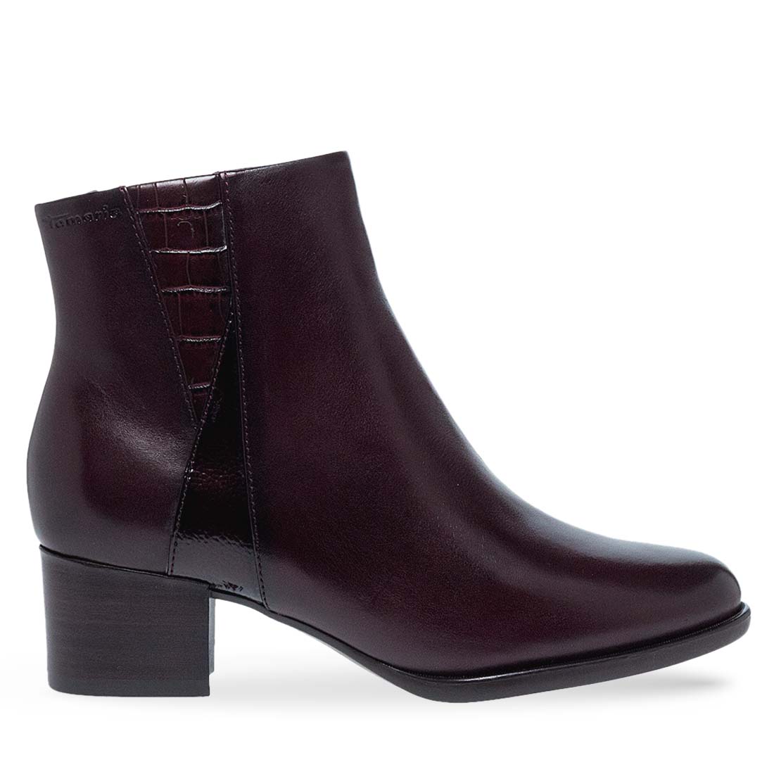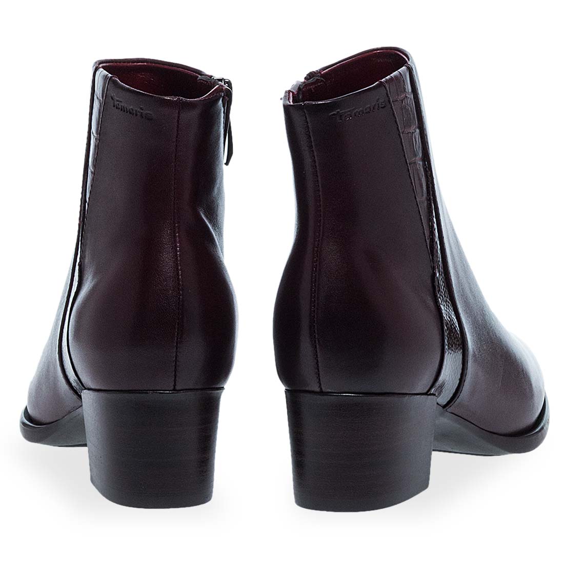 Women''s ankle boots by Tamaris. Women’s ankle boots in burgundy with low heel and side zip. Classic and elegant design for any occasion.