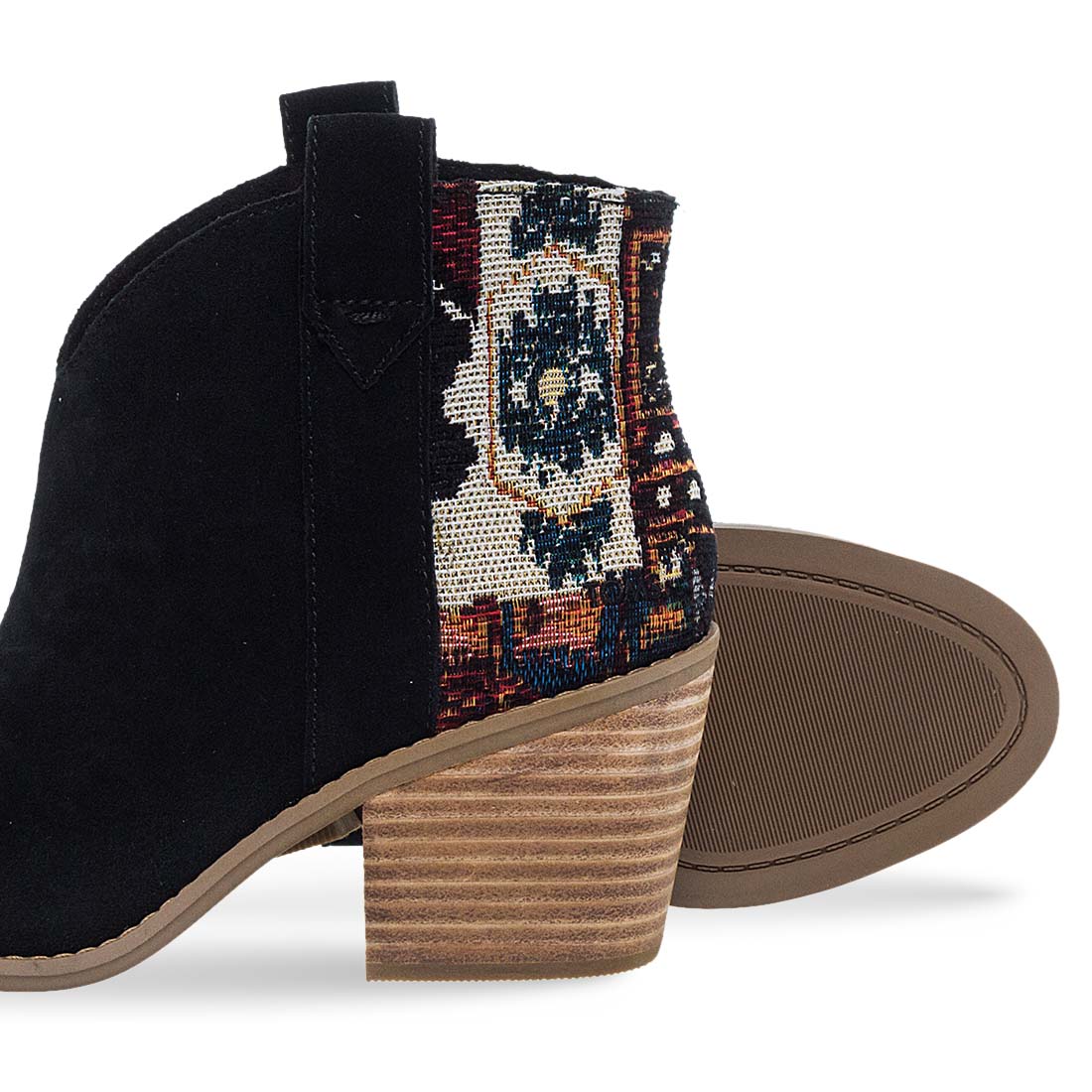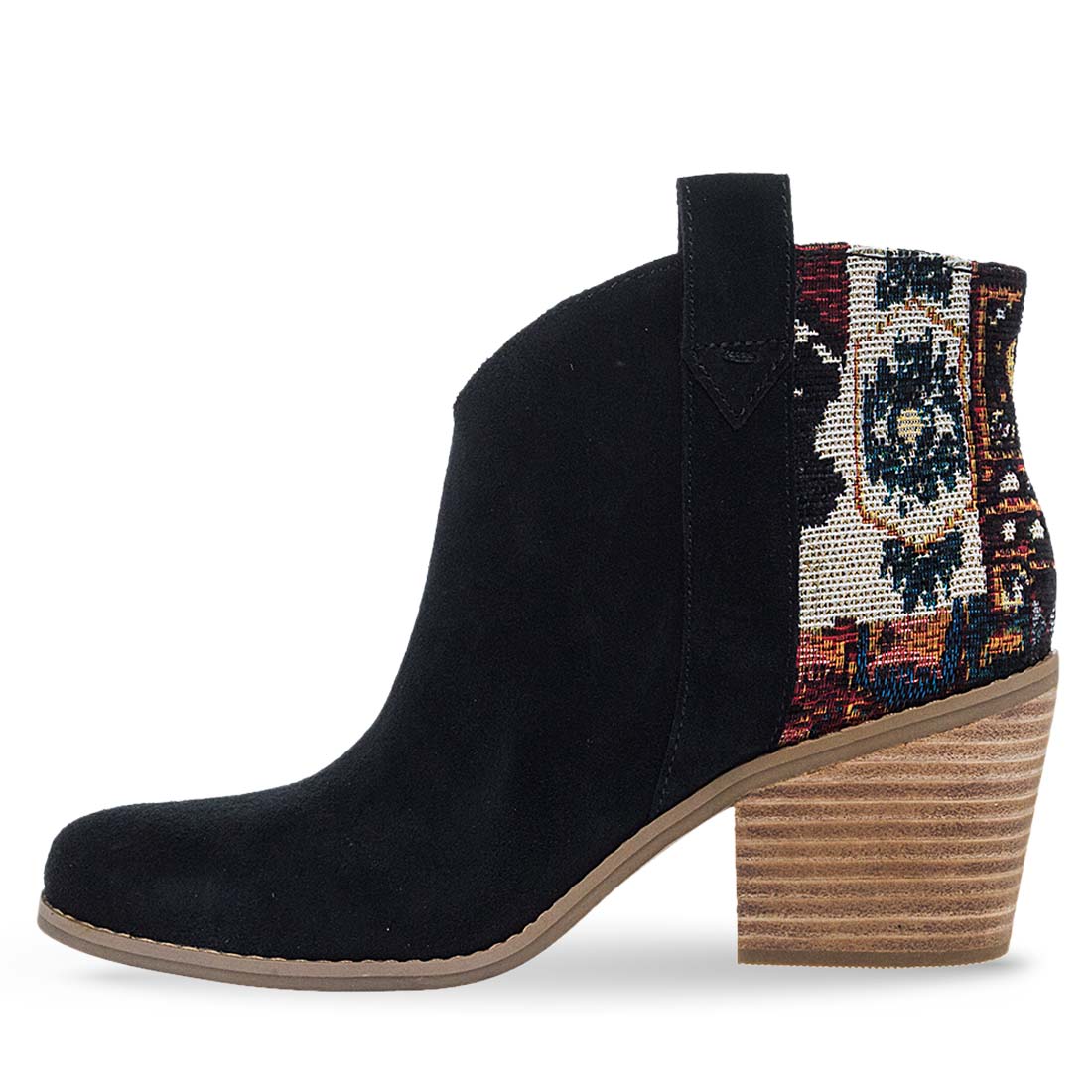 The ideal choice for this winter are these cowboy boots for women by Toms. Available in black color,made of soft suede leather and multicolored design on the side. Very soft insole and stable block heel in brown color. Open design in the front so that they are easy to wear. Upgrade every look in the new season with these fashionable ankle boots by Toms.