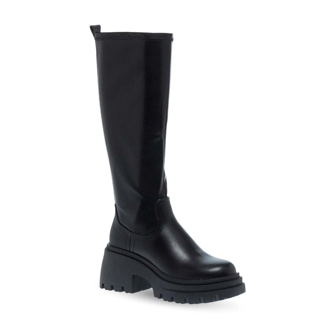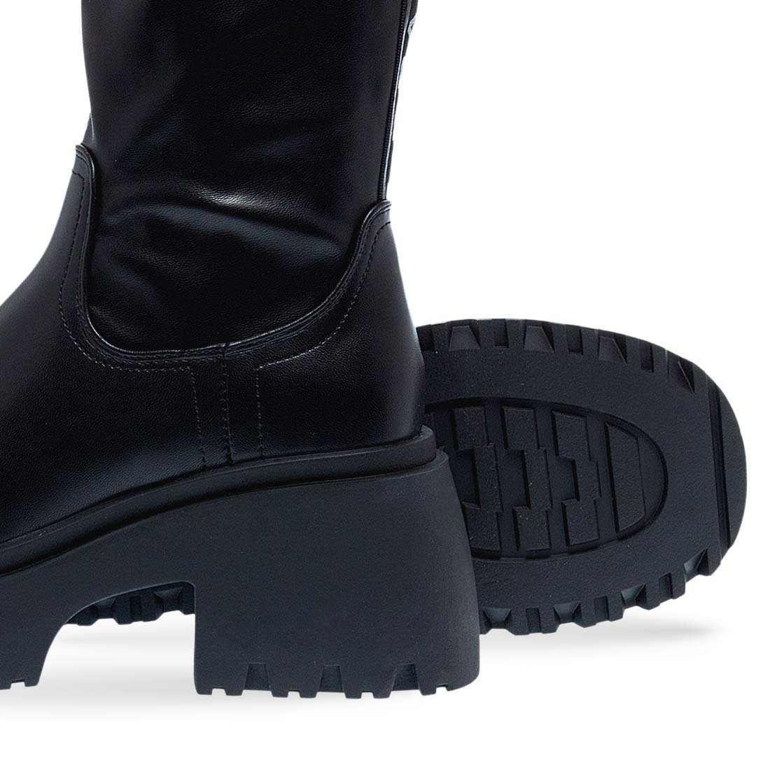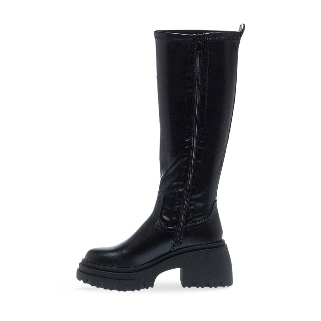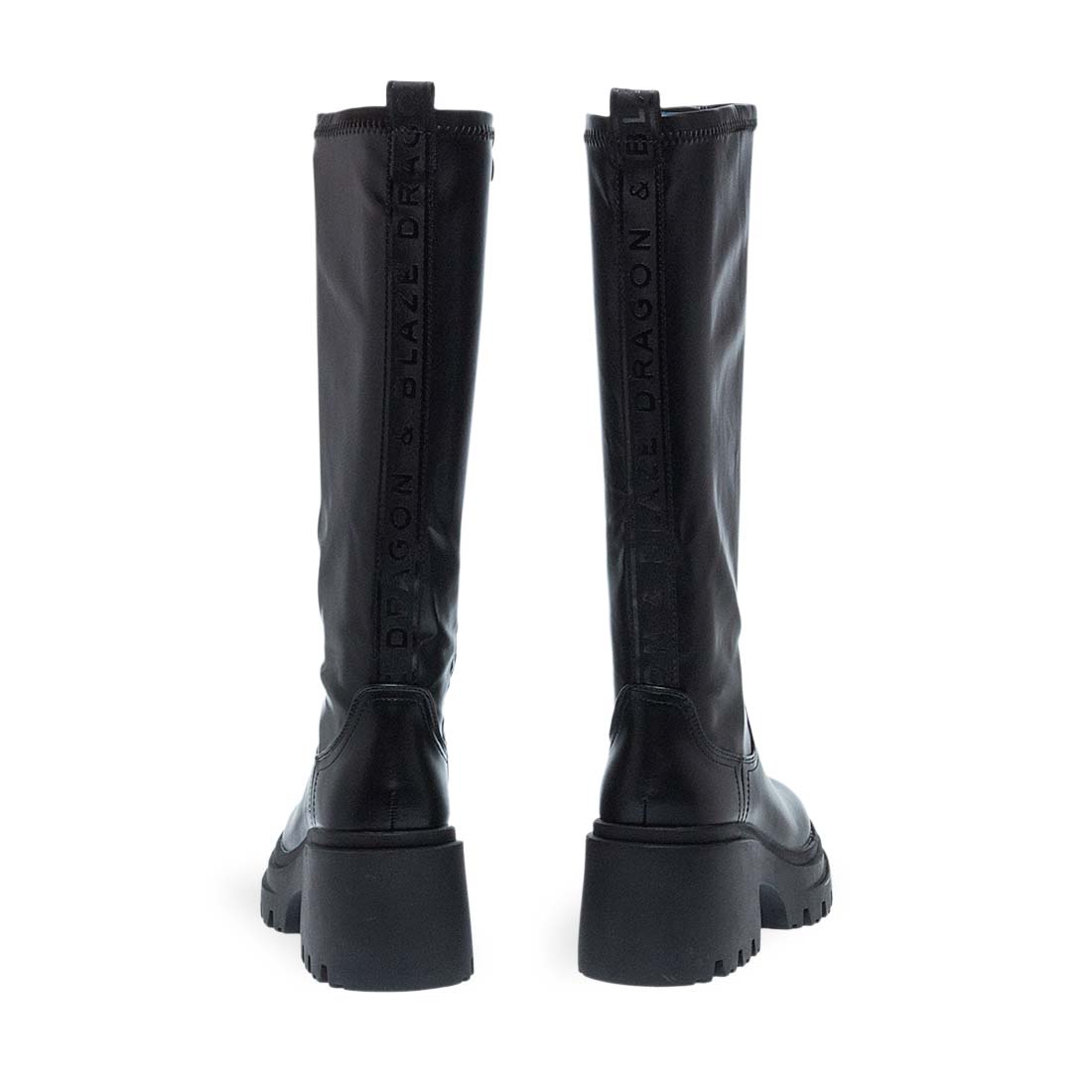 Women''s boots by Dragon & Blaze. Women’s Dragon & Blaze boots in black synthetic leather. Modern design with side zipper and chunky sole for a bold statement look.