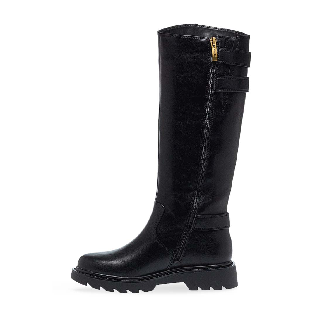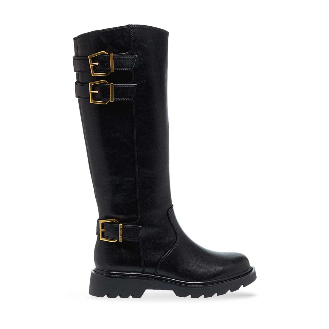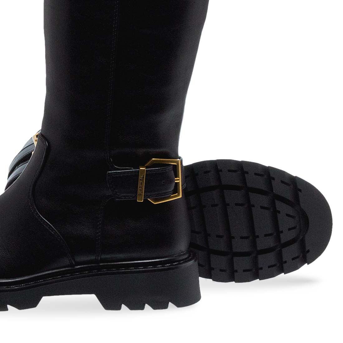 Women''s boots by Tamaris. Women’s tall black boots with gold buckles and chunky sole. Perfect for casual and chic outfits, offering both comfort and elegance.