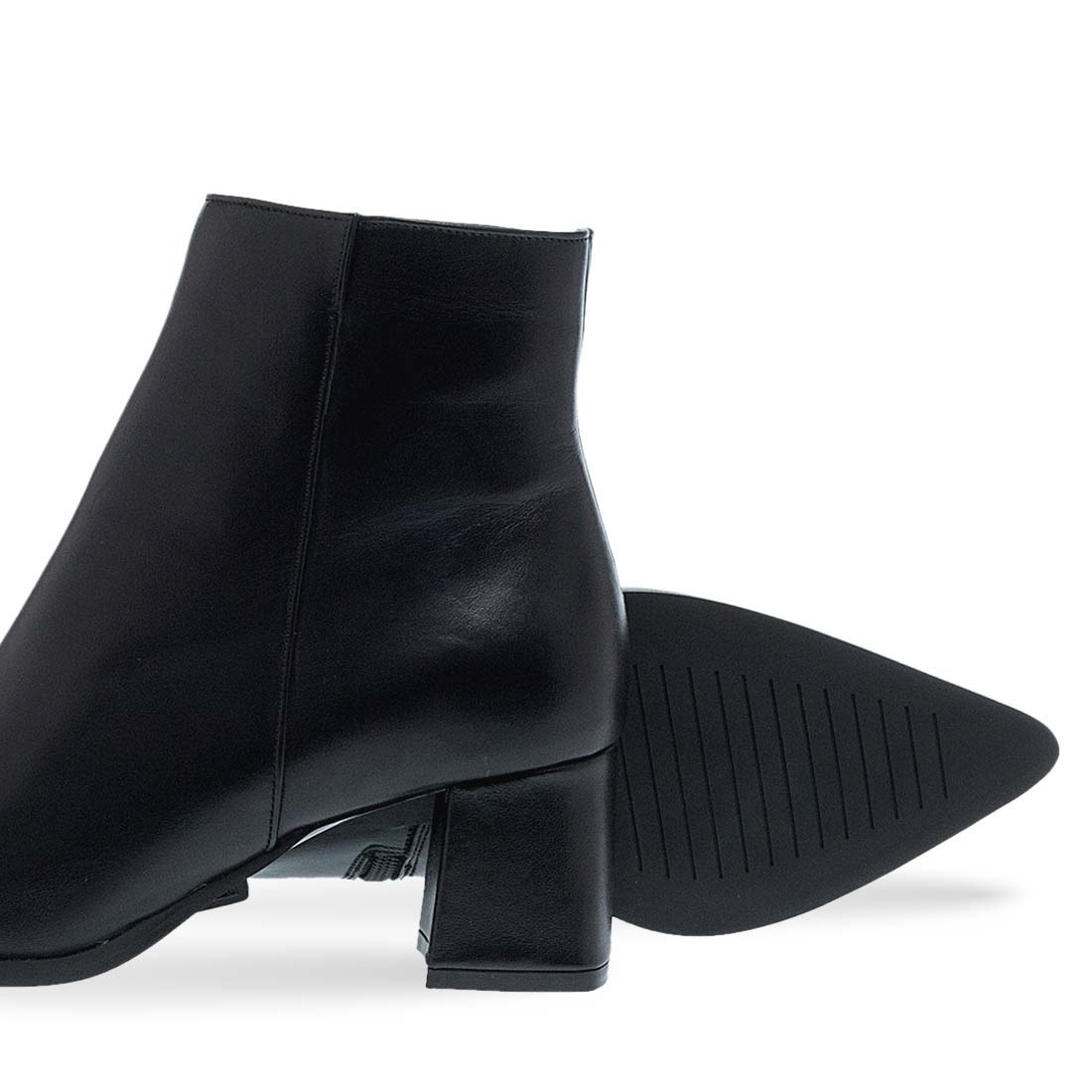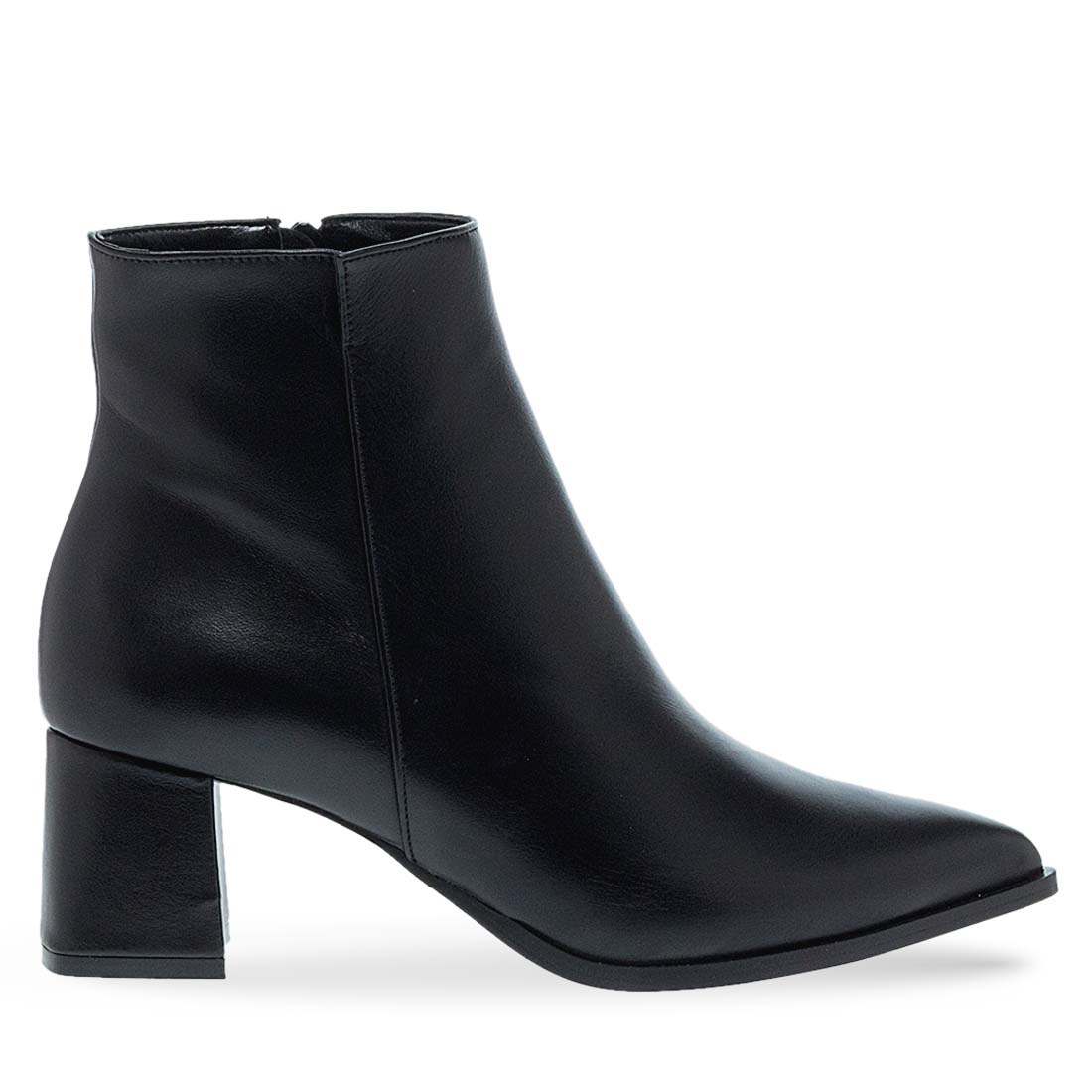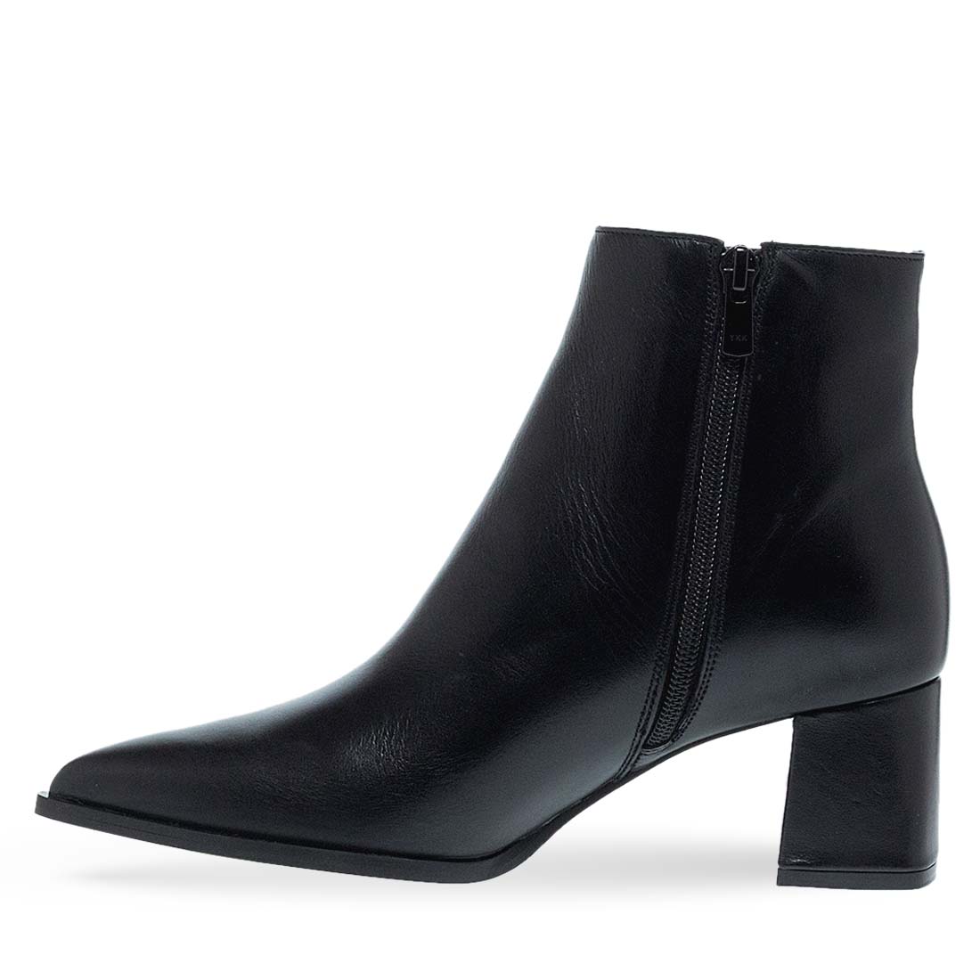 Women''s leather ankle boots by Maison Minrelle. Black ankle boot with low block heel and pointed toe for everyday comfort.