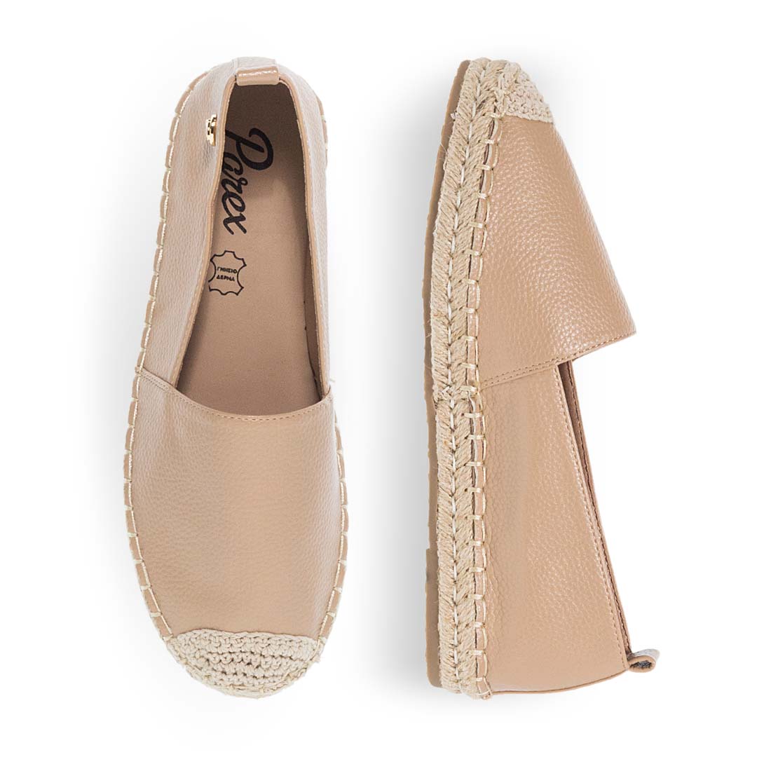 Enjoy comfortable and stylish steps with these plain espadrilles in modern colors by Parex. They have a soft leather insole and a firm sole with a rope lining. Premium quality eco leather.