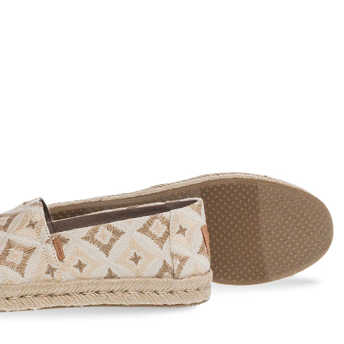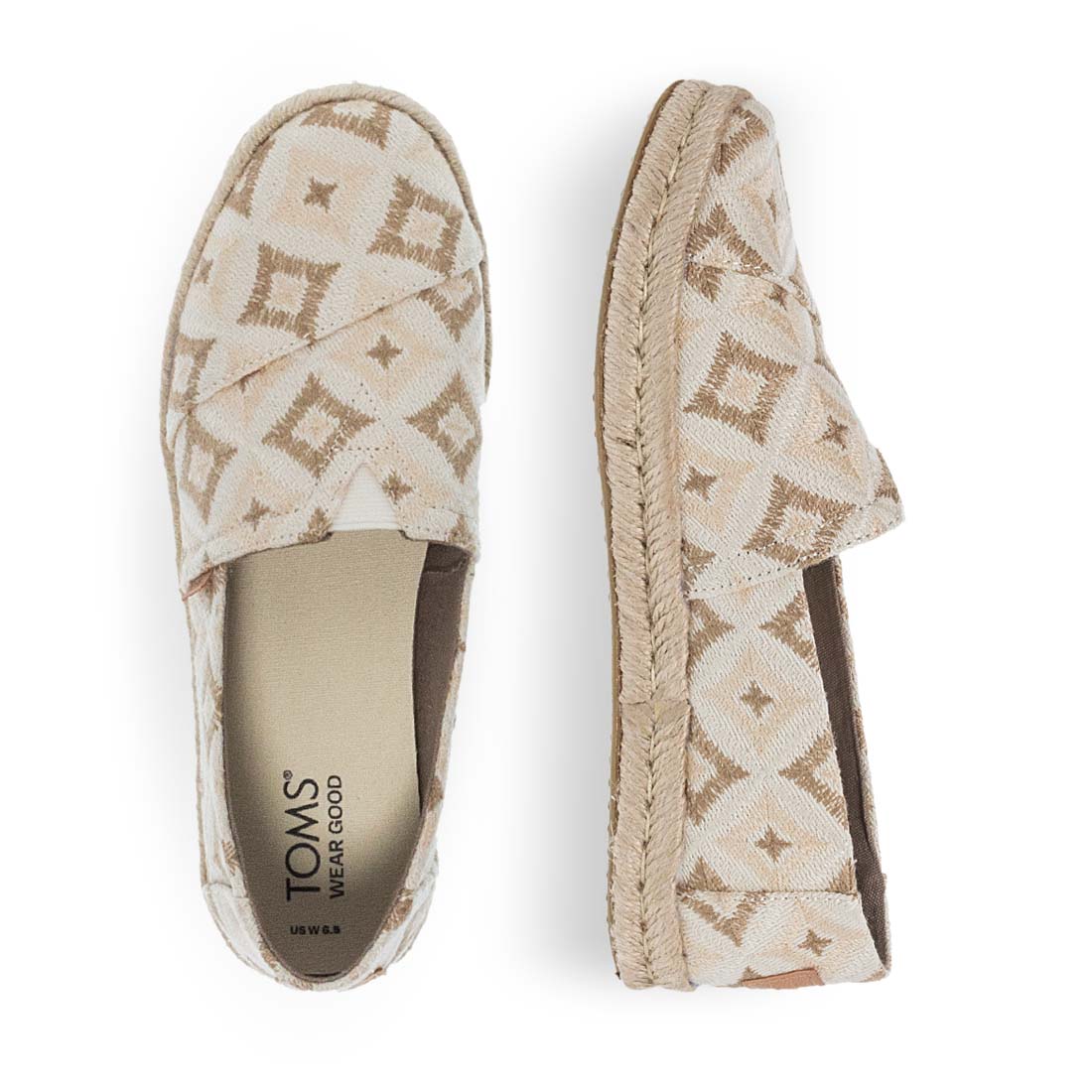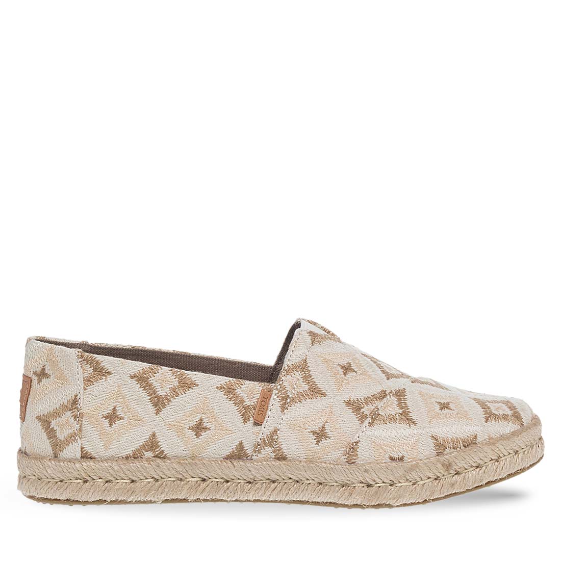 Women''s espadrilles Toms. Give cool vibes to your look with these modern women''s espadrilles by Toms summer collection. Durable rubber sole and rope around. They have a comfortable footbed with OrthoLite Eco LT technology. They stand out for the soft fabric on the outside in beige color with black lines. Feel the summer in these comfortable and soft espadrilles .Εasy to fit.