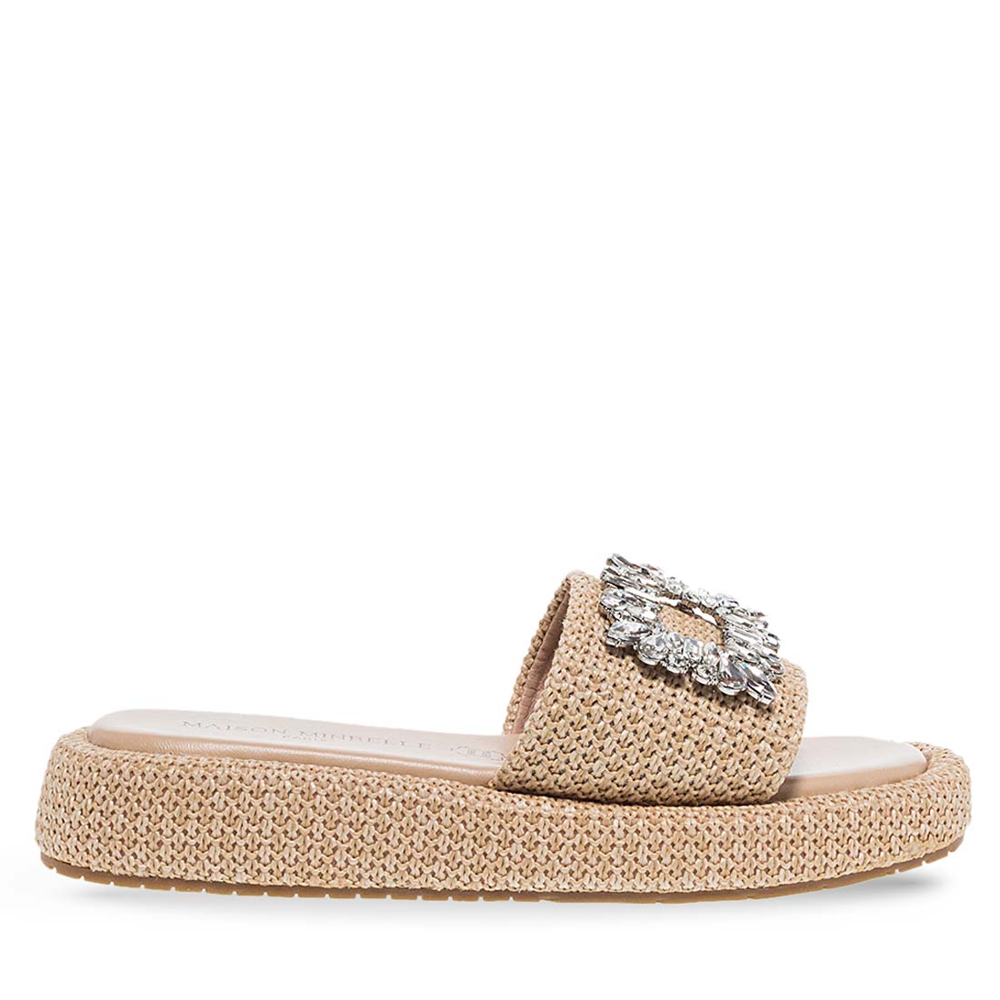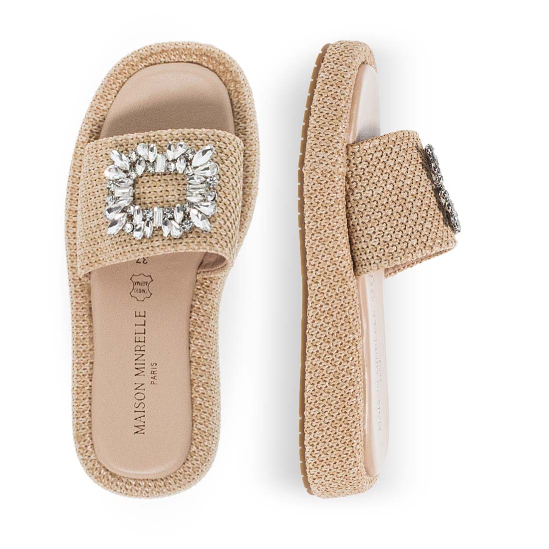 Leather flatforms by Maison Minrelle. Straw design. A comfortable and stylish design to update your summer style! The perfect choice for this sandal season. Easy to wear.