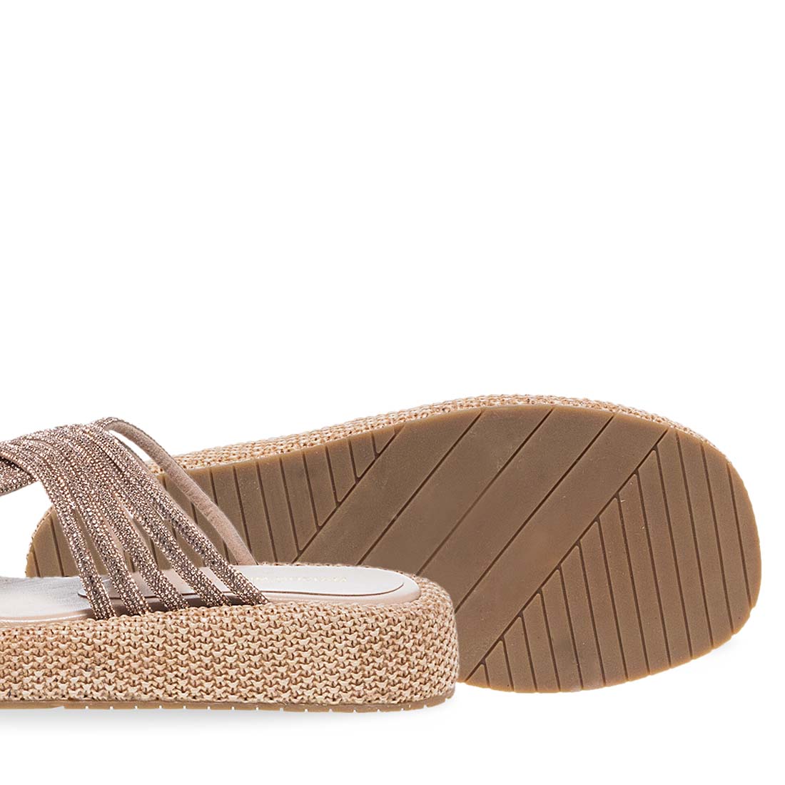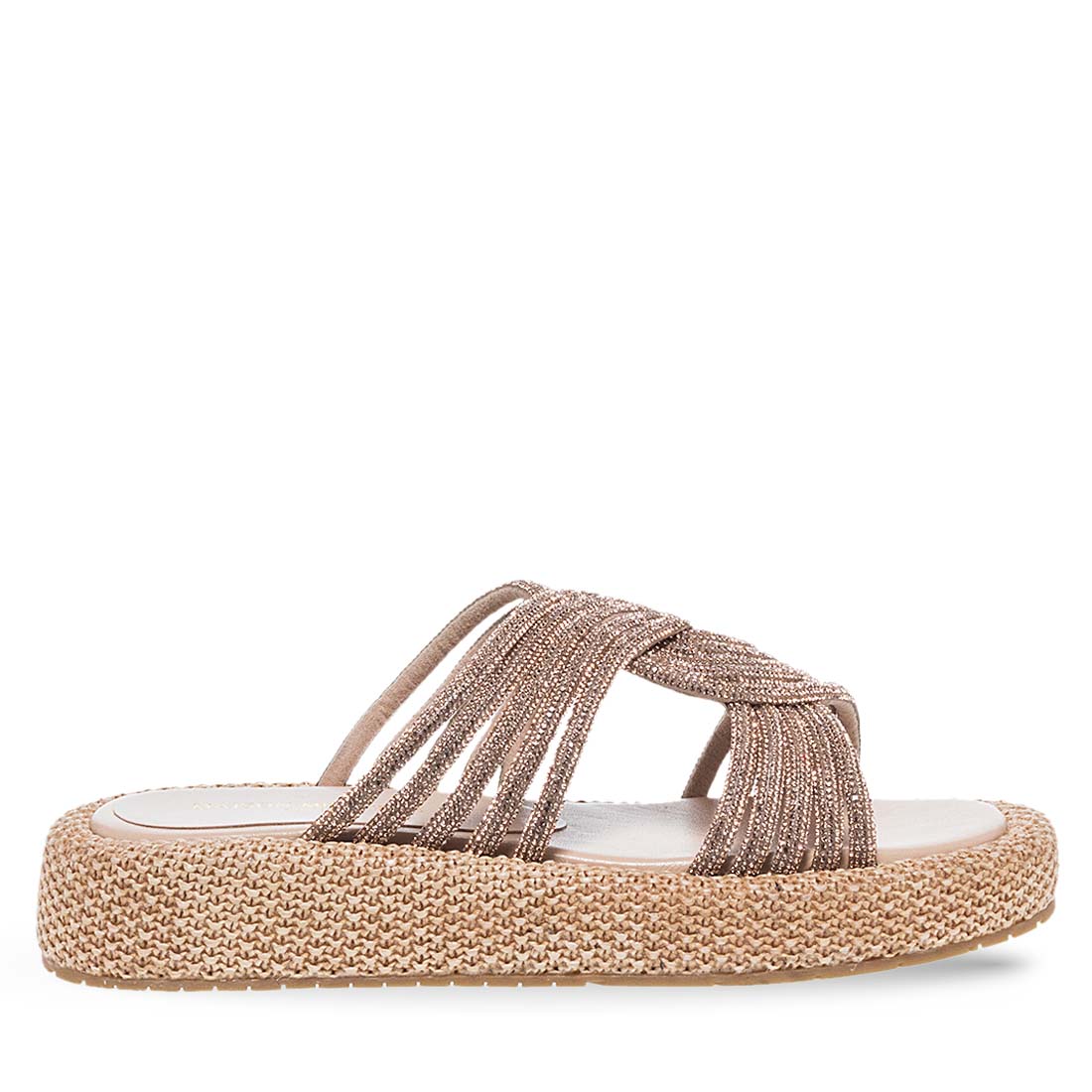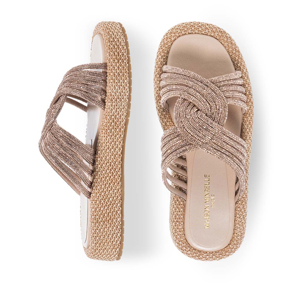 Modern flatform by Maison Minrelle. Made of synthetic leather. Strass detail on the straps that will highlight your every look. Soft footbed and durable platform sole. Excellent combination of materials and colors. Make sure you''re in fashion with these women''s flatforms . Refresh your style with these perfect flatform.