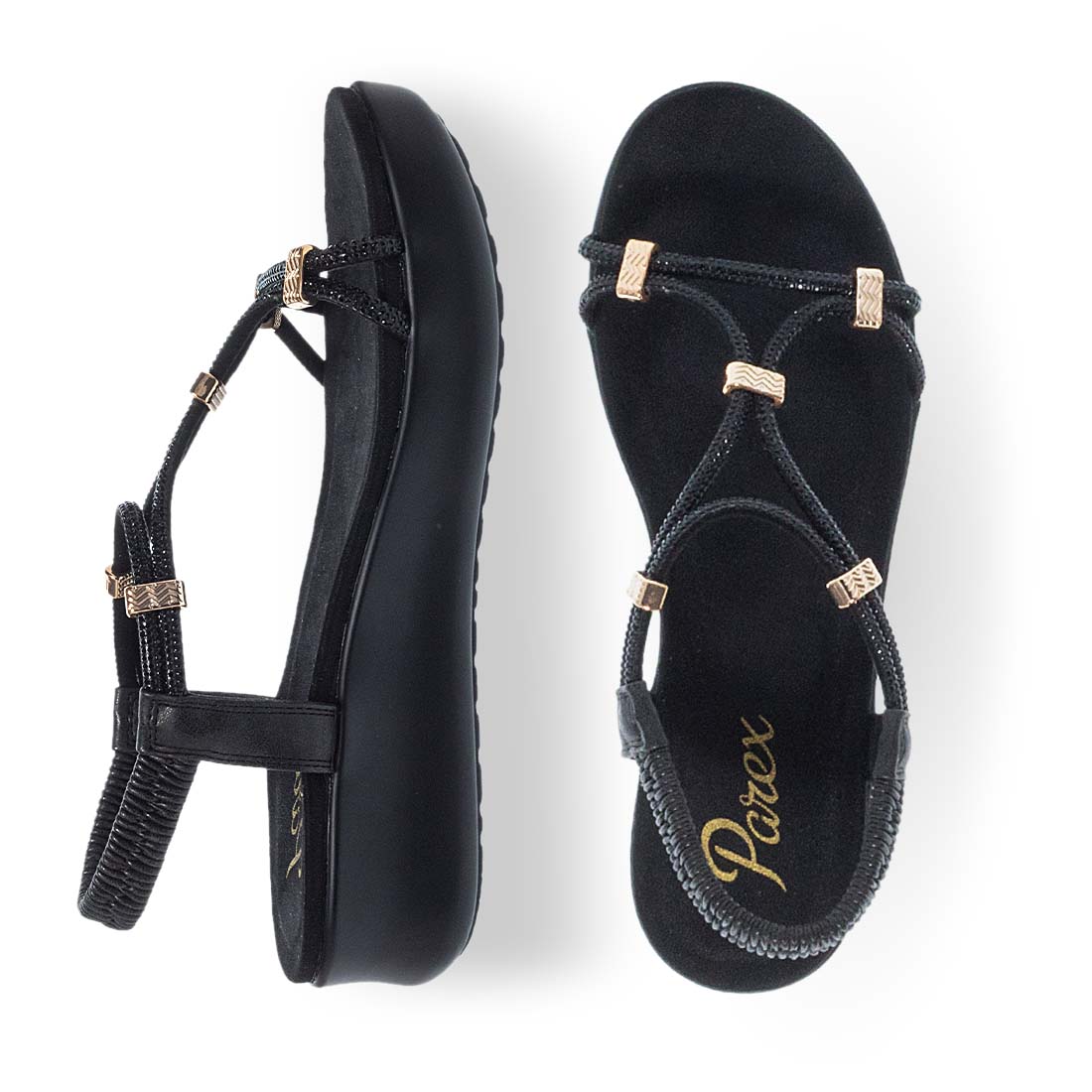 Modern flatform for women by Parex. Easy application with elastic strap at the back of the foot and rhinestone details. Durable outsole. Ideal to use day to night.