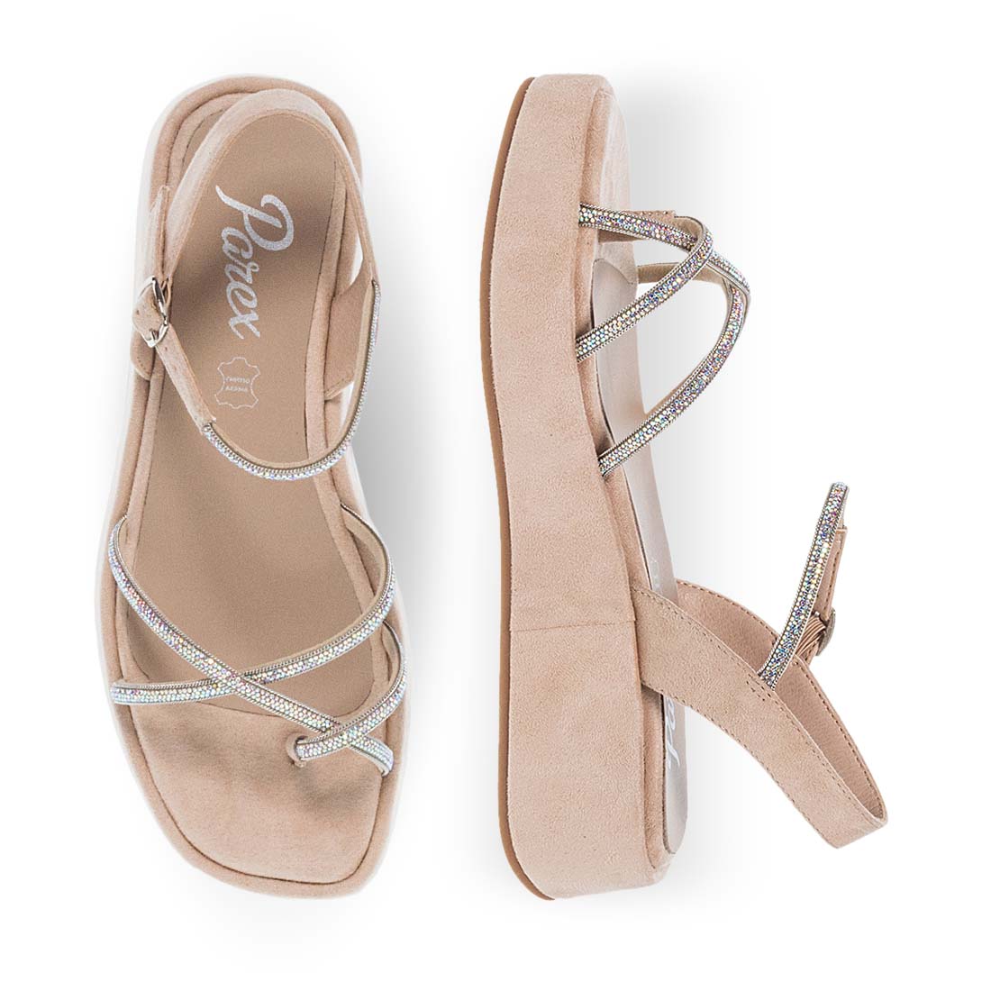 Stand out in your summer style with these modern sandals with rhinestones by Parex. Criss-cross straps at the upper and a buckle closure at the ankle. They have an extremely soft footbed and stable sole. Available in 3 great colors that you can combine with your entire wardrobe. Premium quality eco leather.