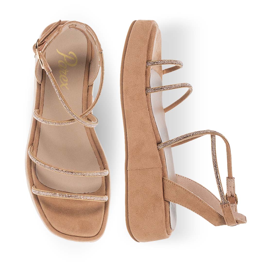 Stylish sandals by Parex. Multi straps with rhinestone detail. Leather insole. Soft footbed and durable platform sole. Excellent combination of materials and colors. Make sure you''re in fashion with these women''s flatforms sandals.