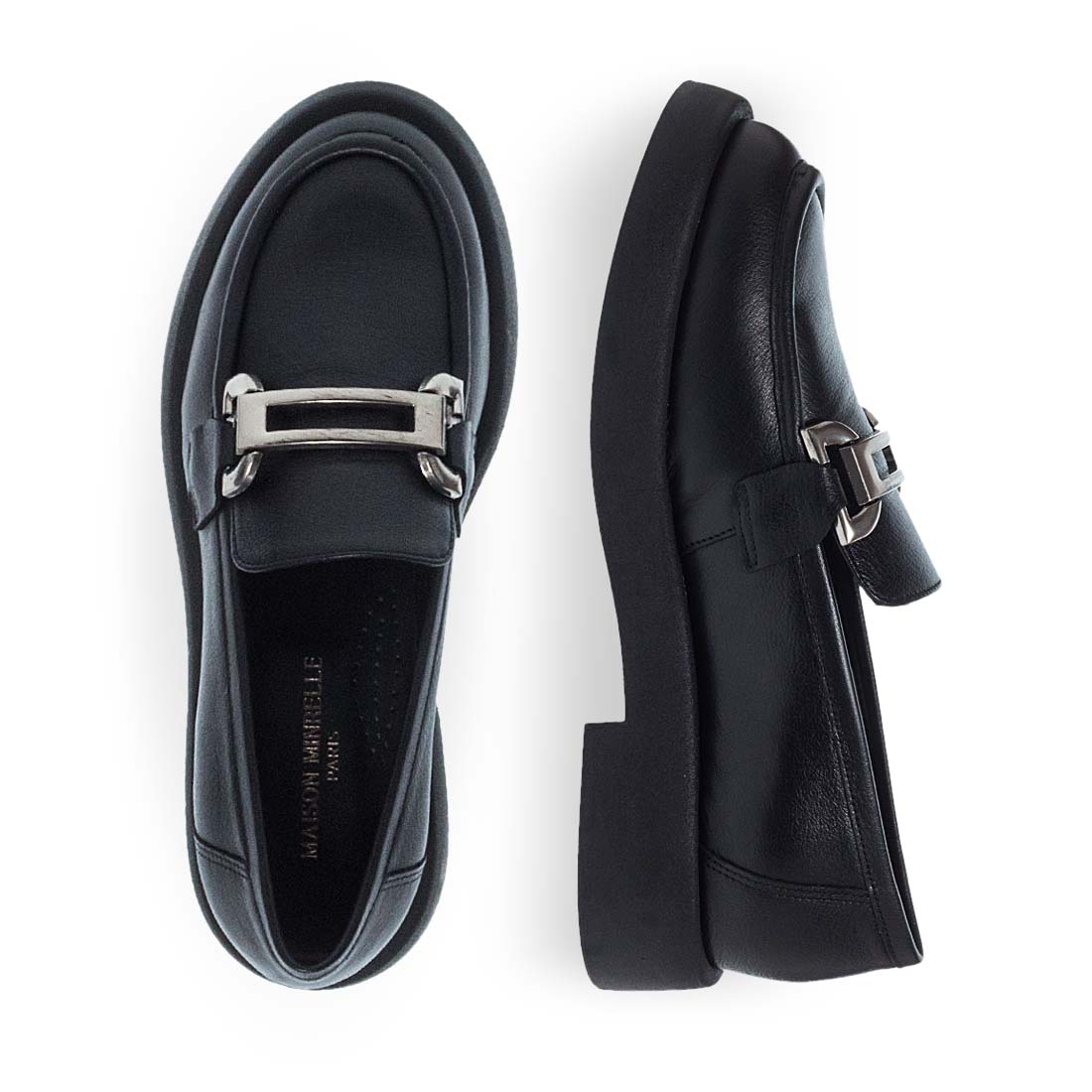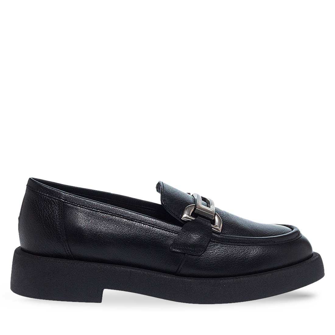From Maison Minrelle AW collection, these moccasines add glamour to a classic style. Made with smooth leather uppers, they feature metallic-finished detailing.