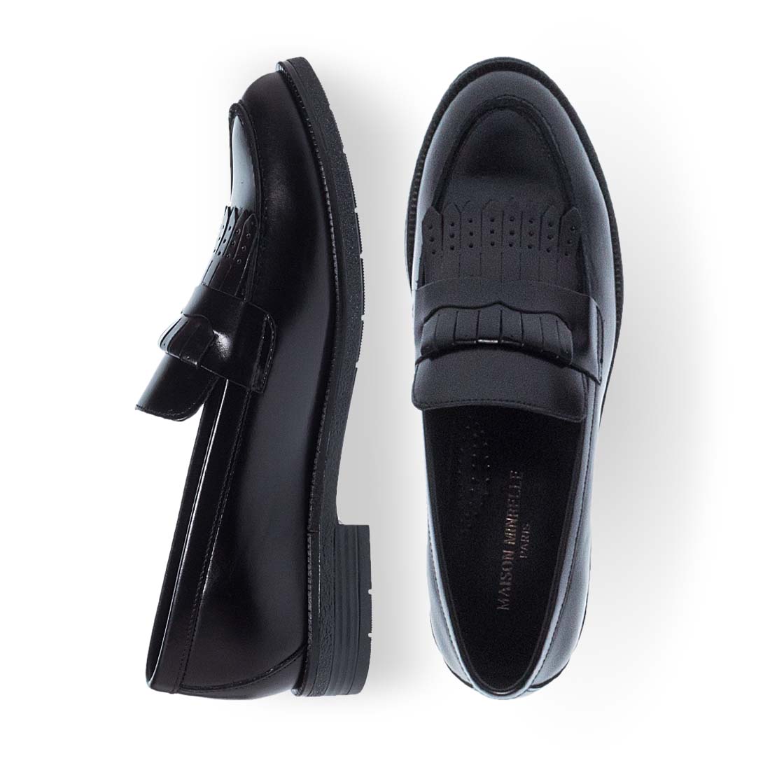 Enhance your style with these Maison Minrelle patent leather moccasins, combining finesse and comfort. Perfect for any occasion, these moccasins will become your favorite shoes. These moccasins come with a soft insole, fringe details and rubber outsole.